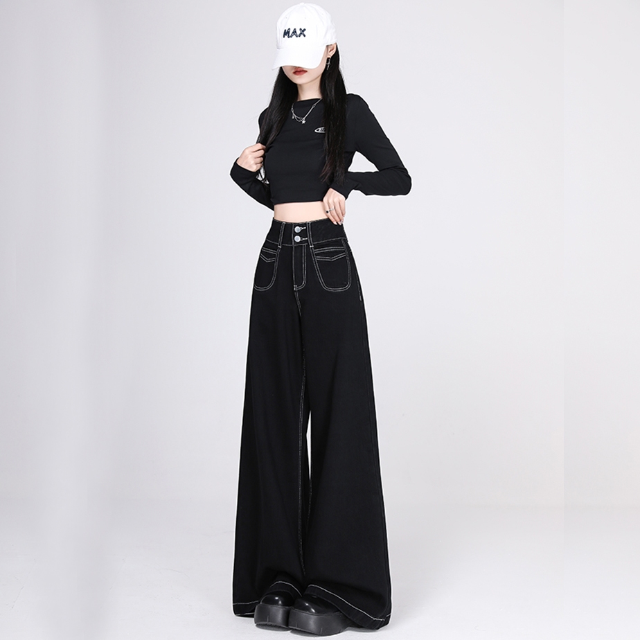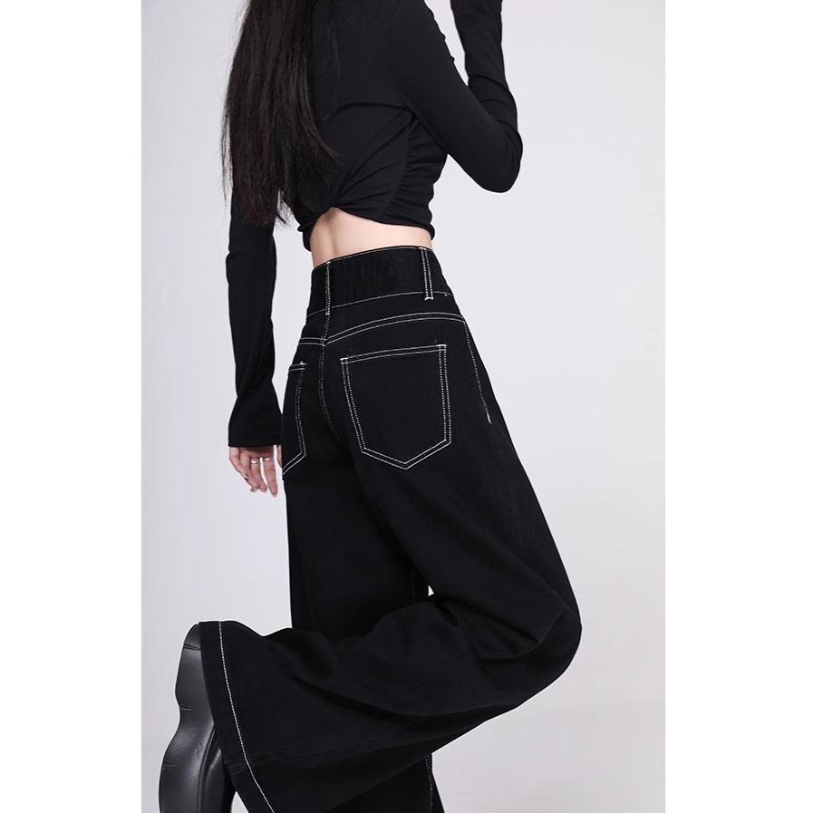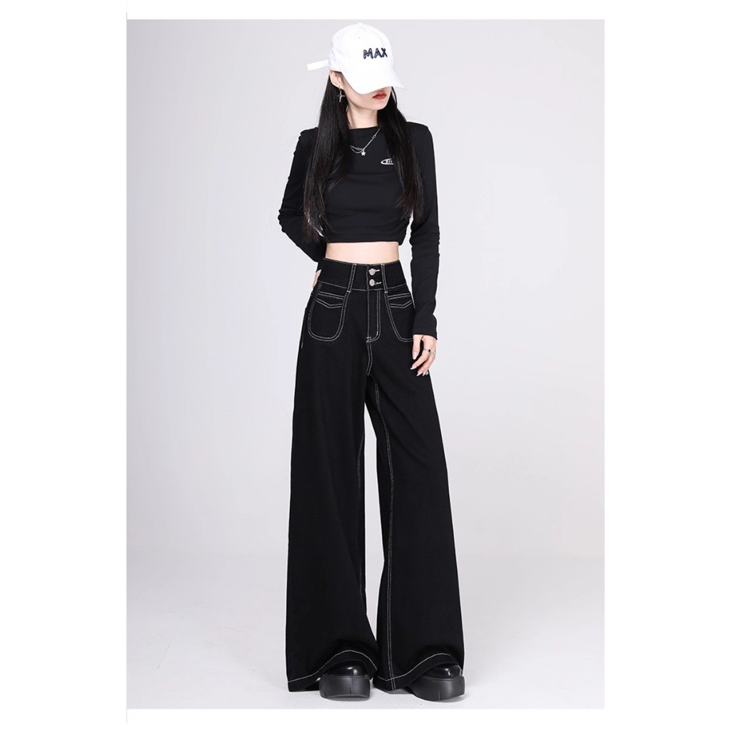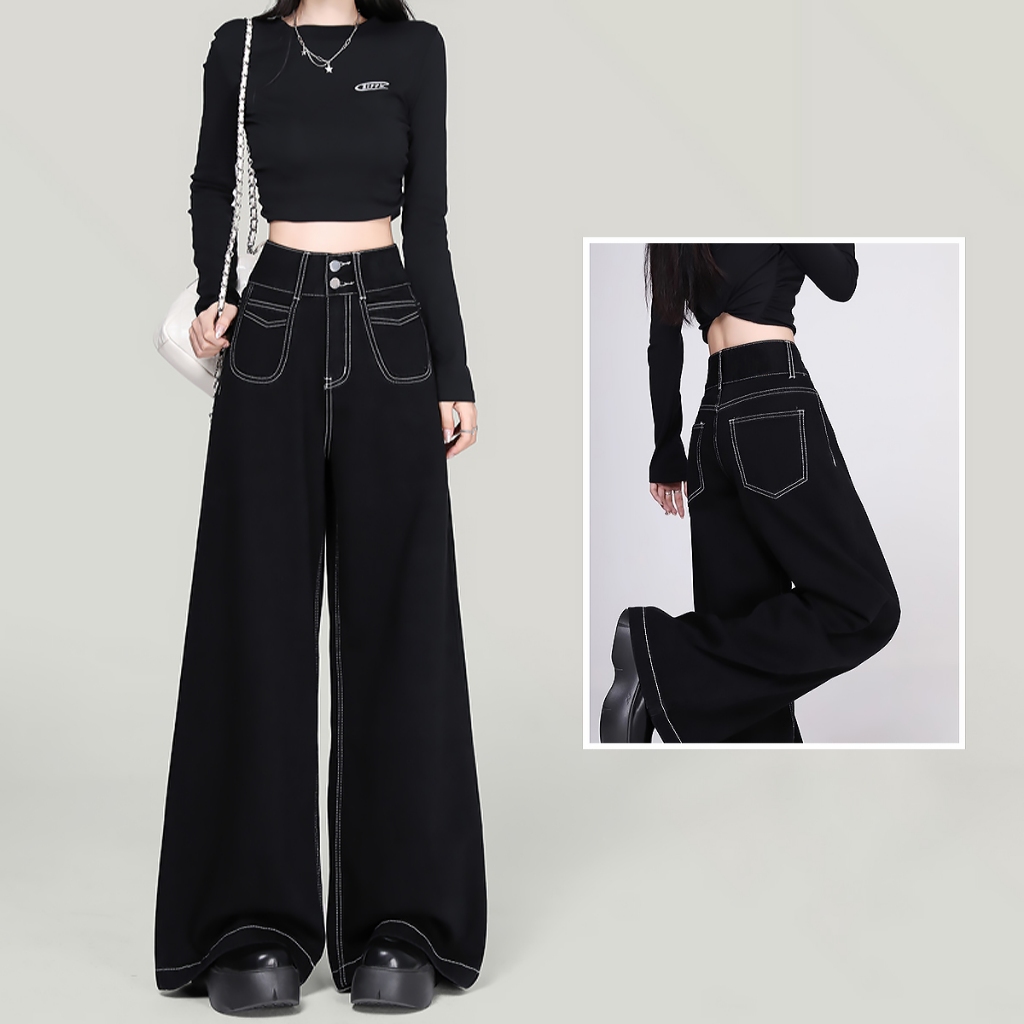 [Real pict] Celana Jeans Wanita Baggy Jeans Wide Leg Jeans hitam celana jeans gombrong wanita terbaru Murah Gratis Ongki