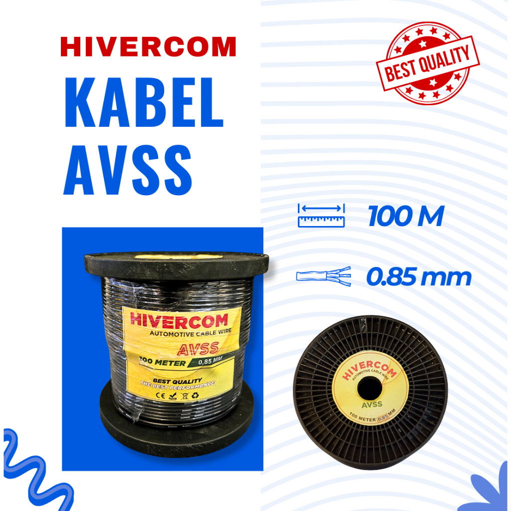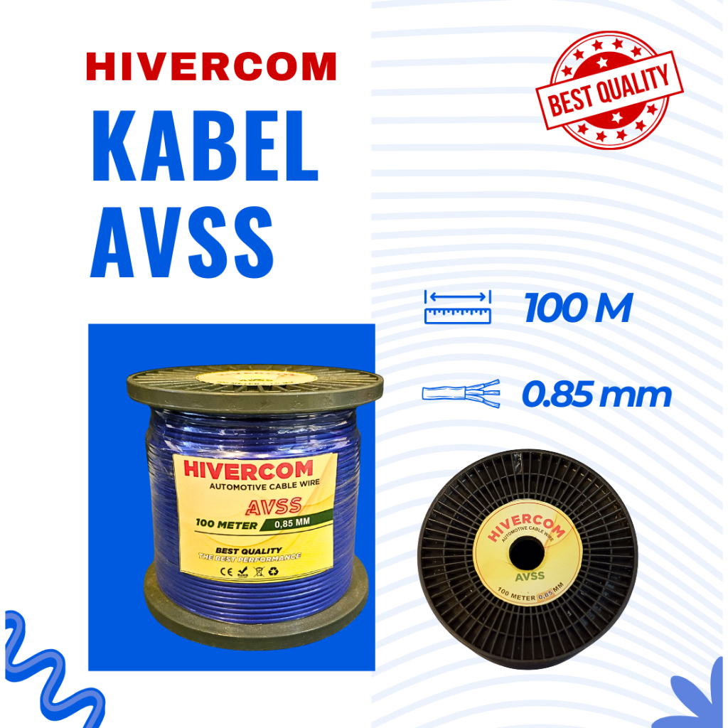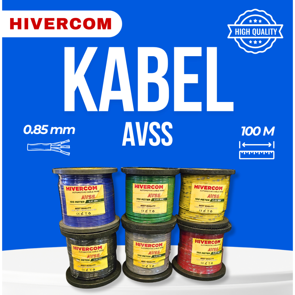 HIVERCOM Kabel Bintik Otomotif AVS/AVSS 0.85mm x 100M Bobin Gulungan Roll – Serabut Tembaga Body Mobil Motor