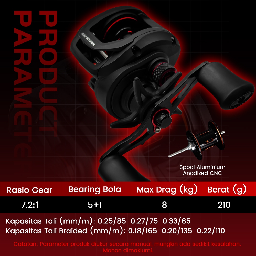 SEAHUNTER x KastKing BRUTUS PRO Reel BC Baitcasting Reel Pancing,Drag Clicker,7.2:1 Gear Ratio,5+1 BB Ball bearing,Alumi