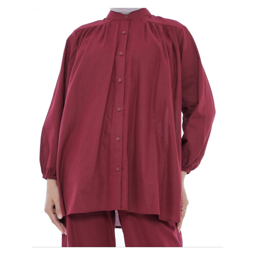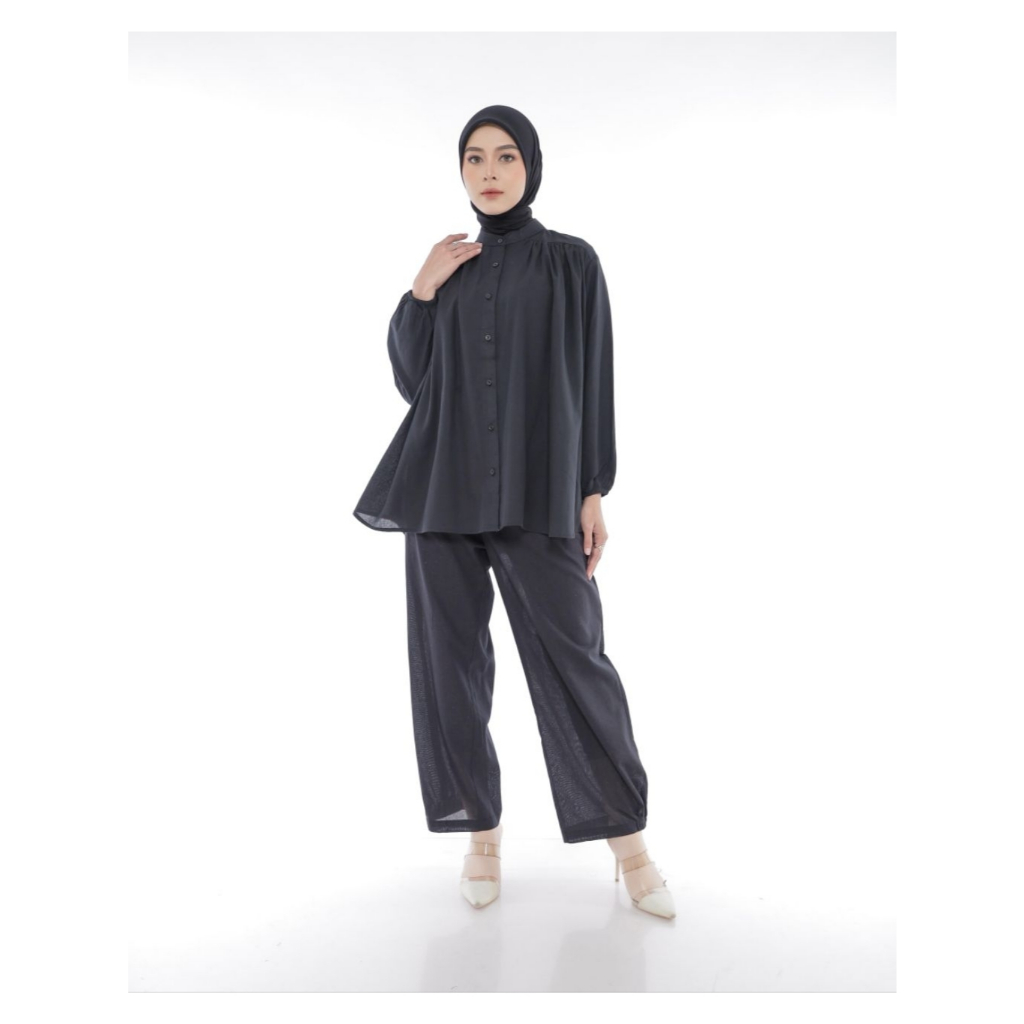 One Set Wanita Kekinian Rafetta Setelan Celana Carla Linen Polos Busui Wudhu Friendly Lengan Panjang