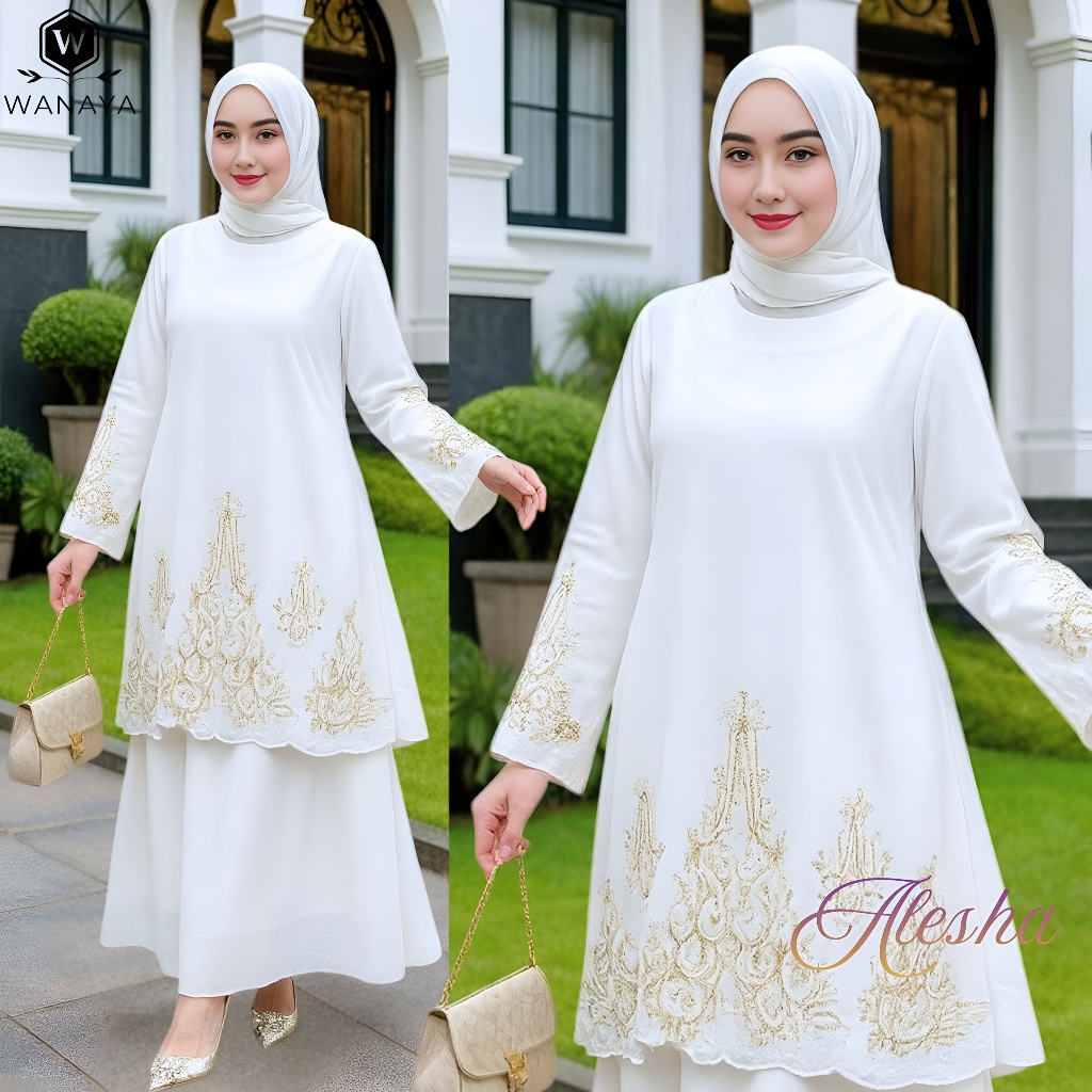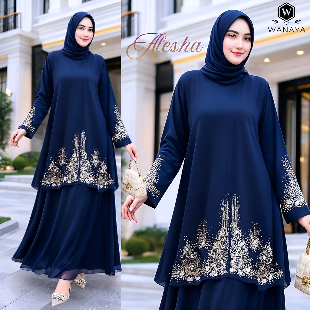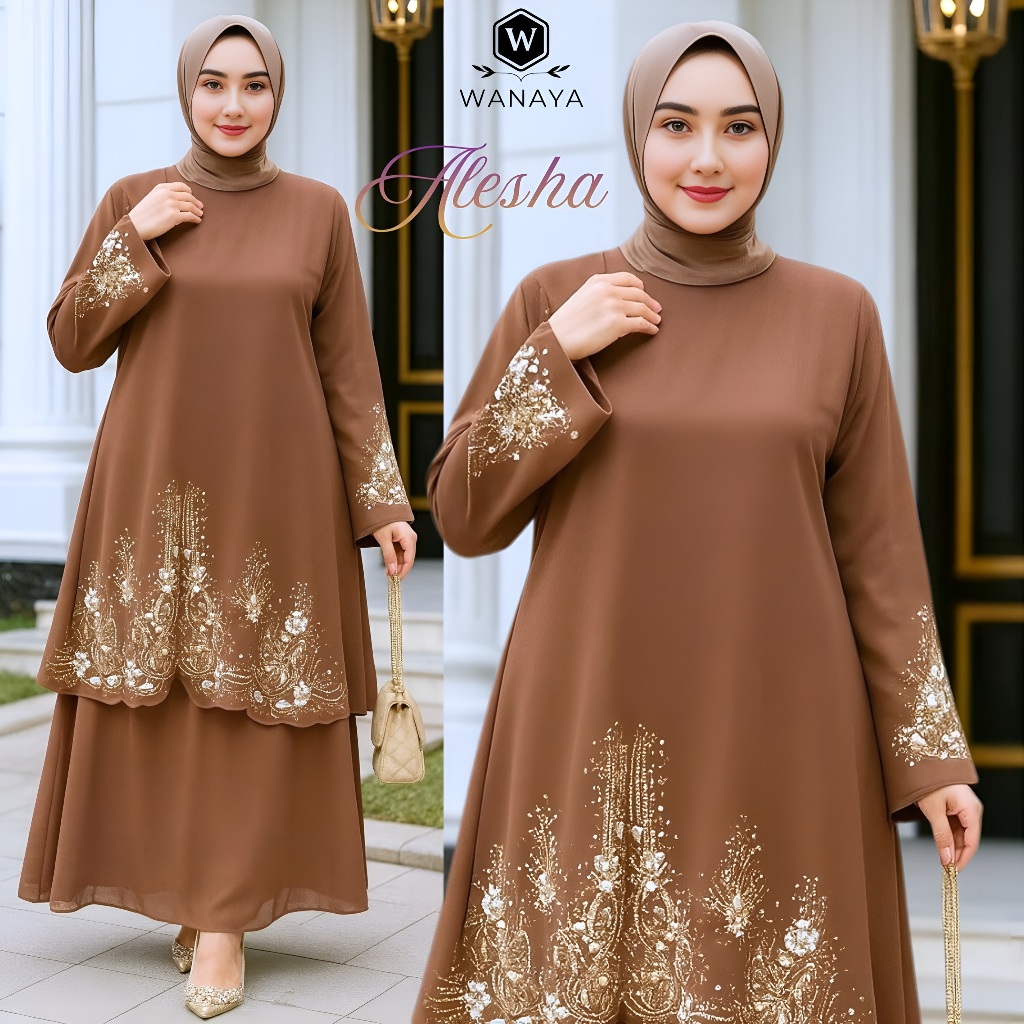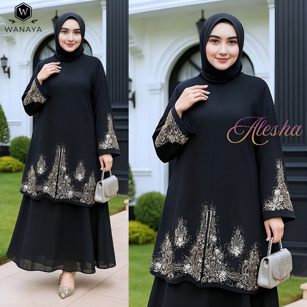 Alesha Stelan Rok Ceruty Babydoll Premium Full Furing Terbaru mix Bordir dan Payet Estetis