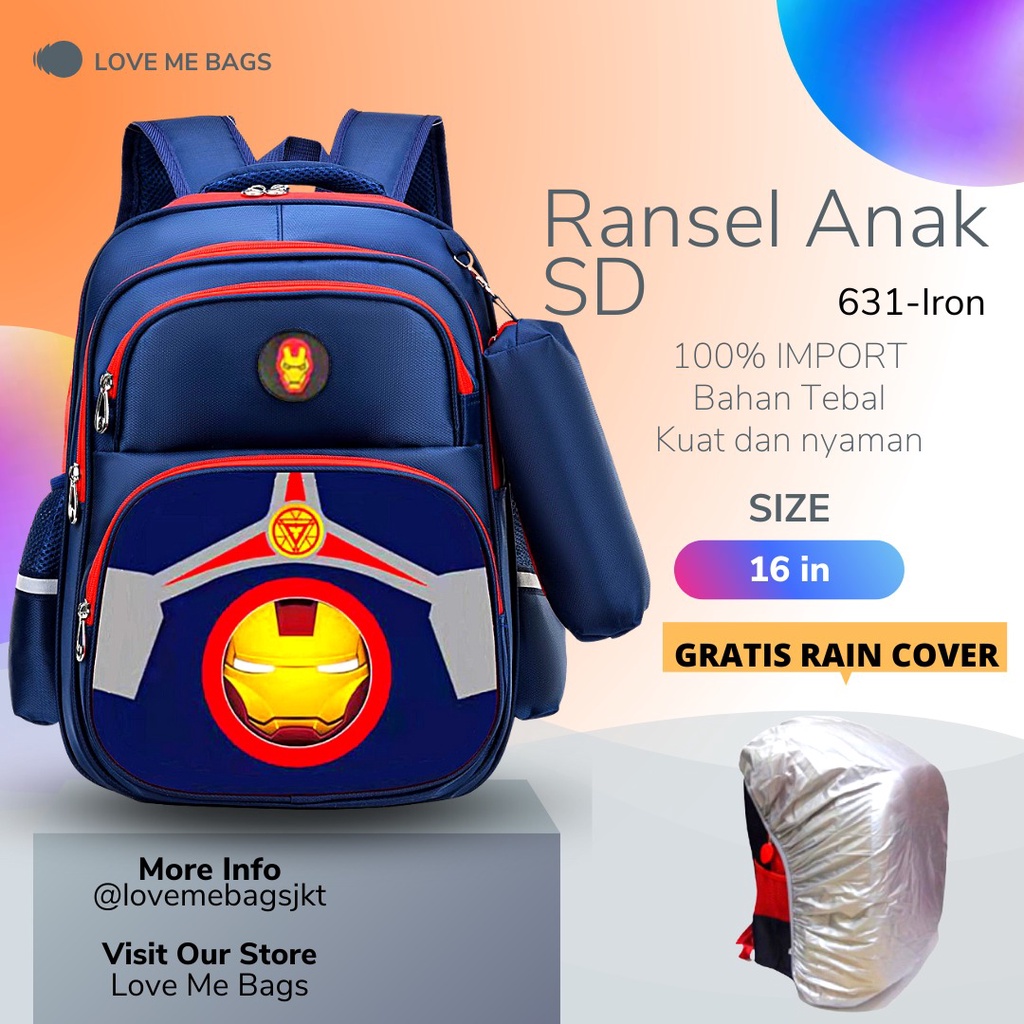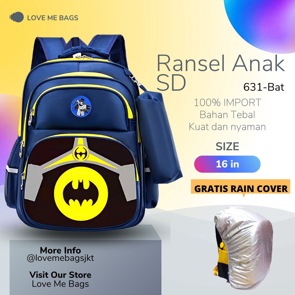 LMB Tas Anak Sekolah Laki Laki SD Import Bahan Nilon Premium Karakter Superhero Bagian Depan Timbul 6D Tebal dan Kuat Ny