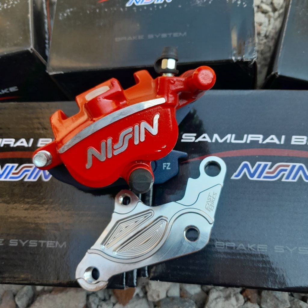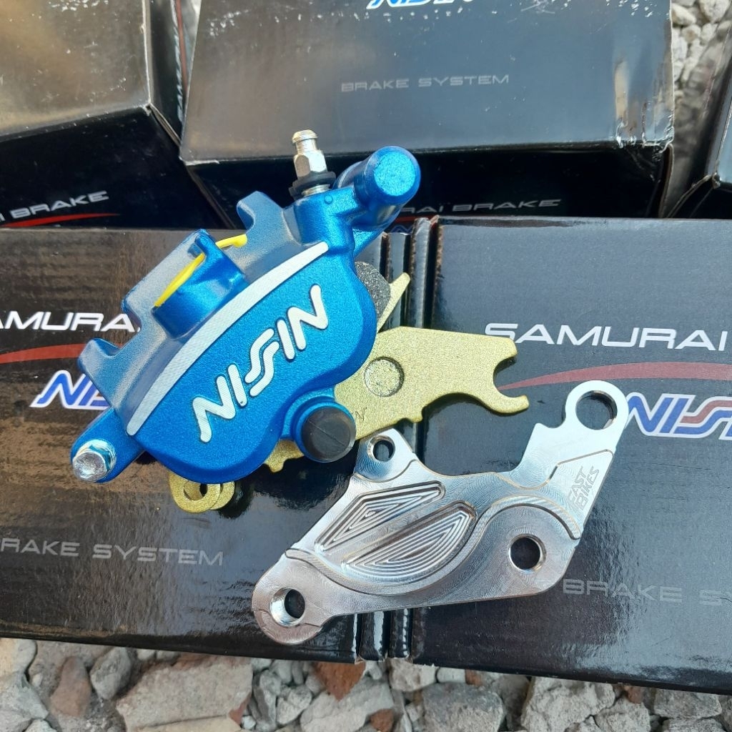 Kaliper samurai 2P set breket CNC 260mm 300mm Fizr jupiter z vega r old 125Z fiz r lama discbrake rem depan 2 p caliper set kampas disbrek nissin 2piston samurai 2 piston