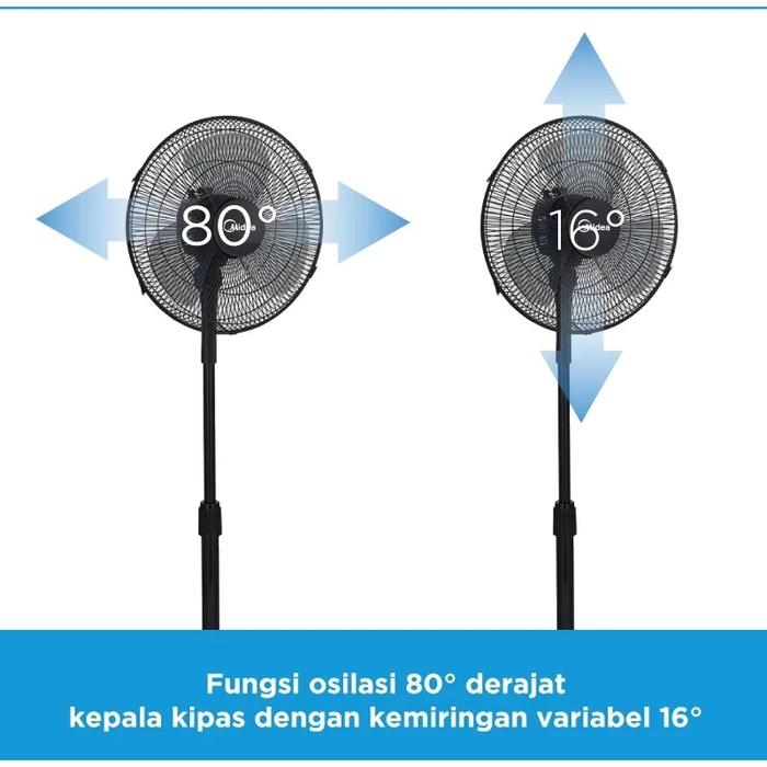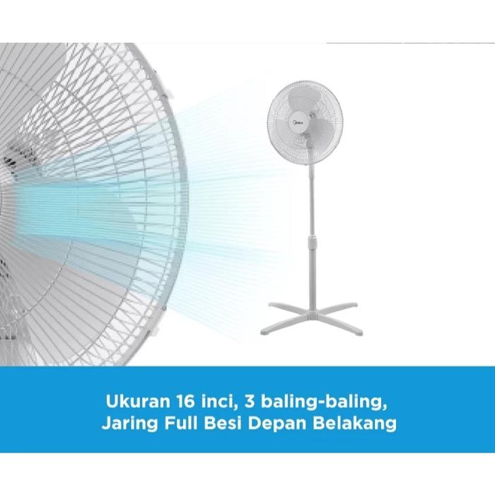 MIDEA KIPAS ANGIN BERDIRI 16 INCH MFS160M0BDW MFS160M0BDK MOTOR TAHAN LAMA 3 PENGATURAN ANGIN & TINGGI BISA DIATUR KOKOH