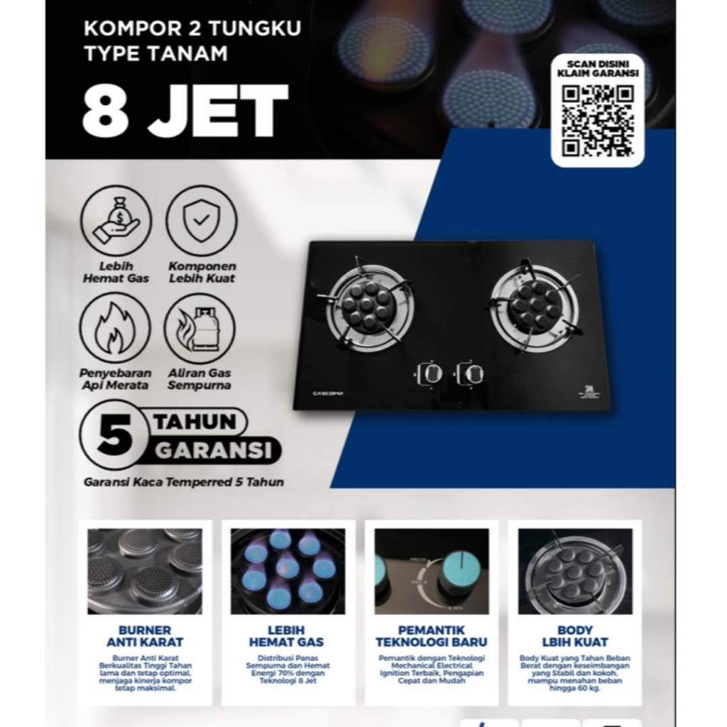Gascomp Kompor Tanam 8 Jet Hemat Gas Kaca Tempered Glass Dengan Kaki SNI Premium Kitchenware