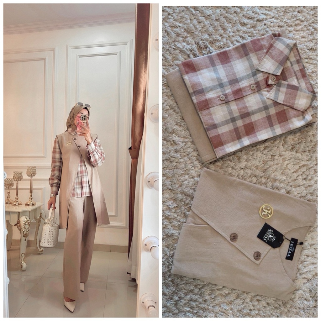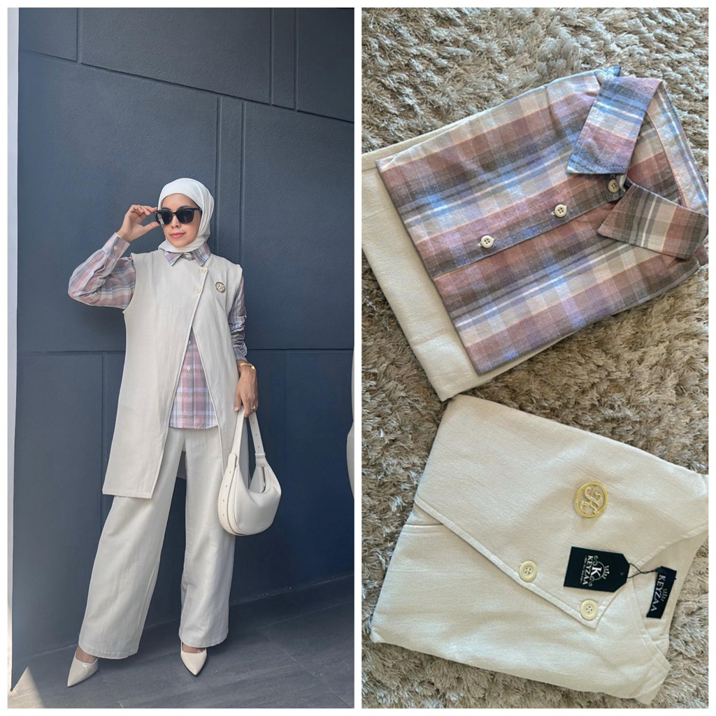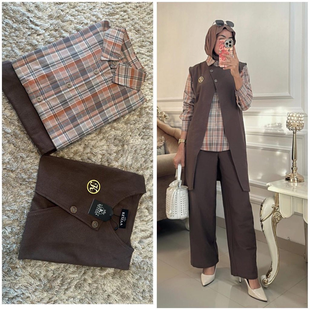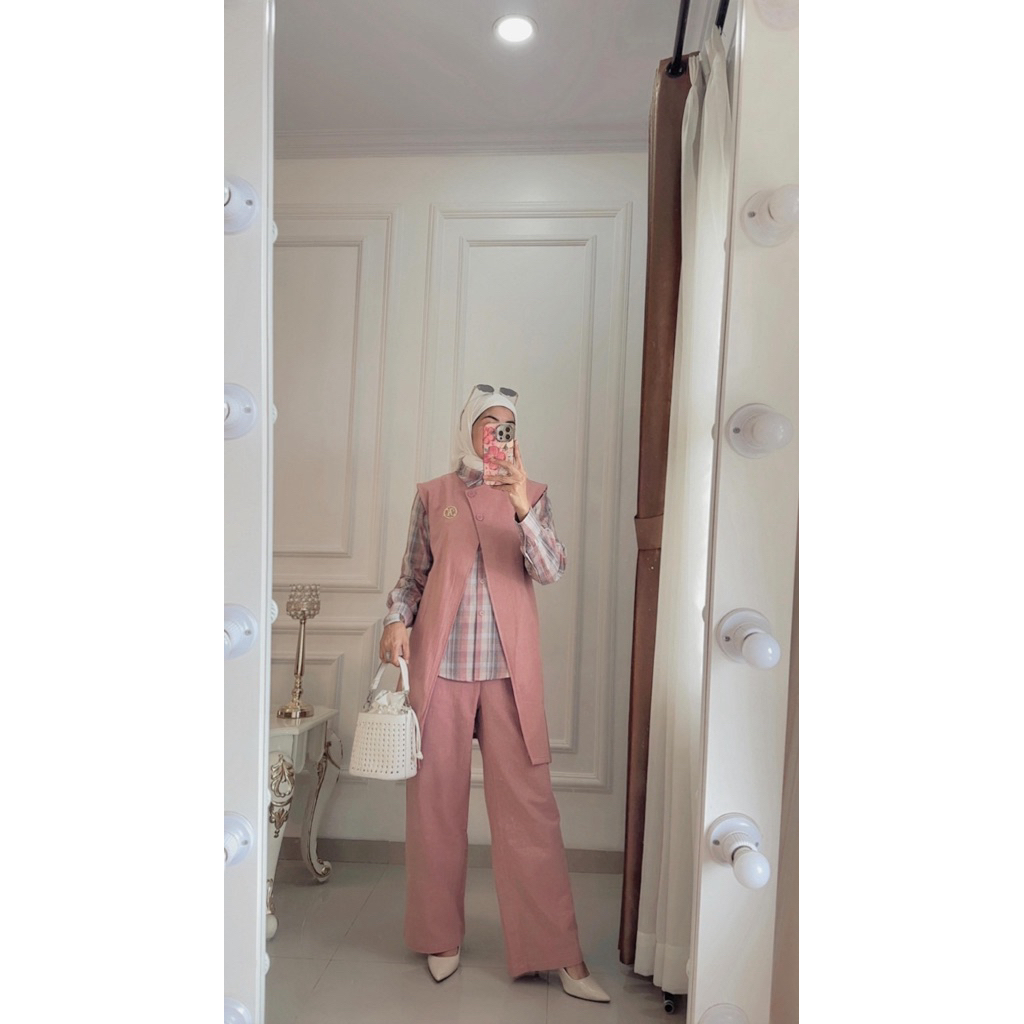 Setelan Wanita One Set 3 in 1 Kemeja Vest Celana Emely by Keyzaa