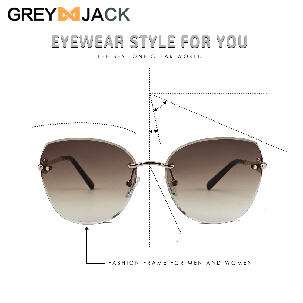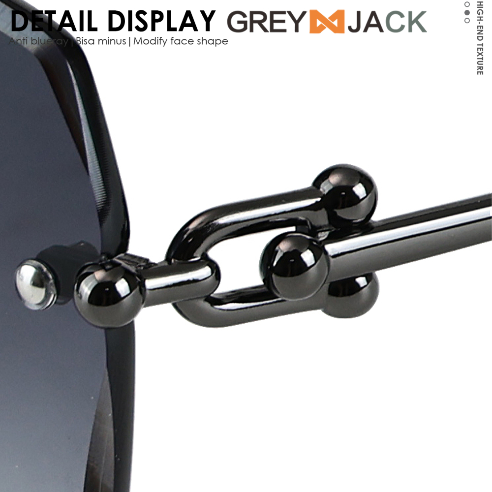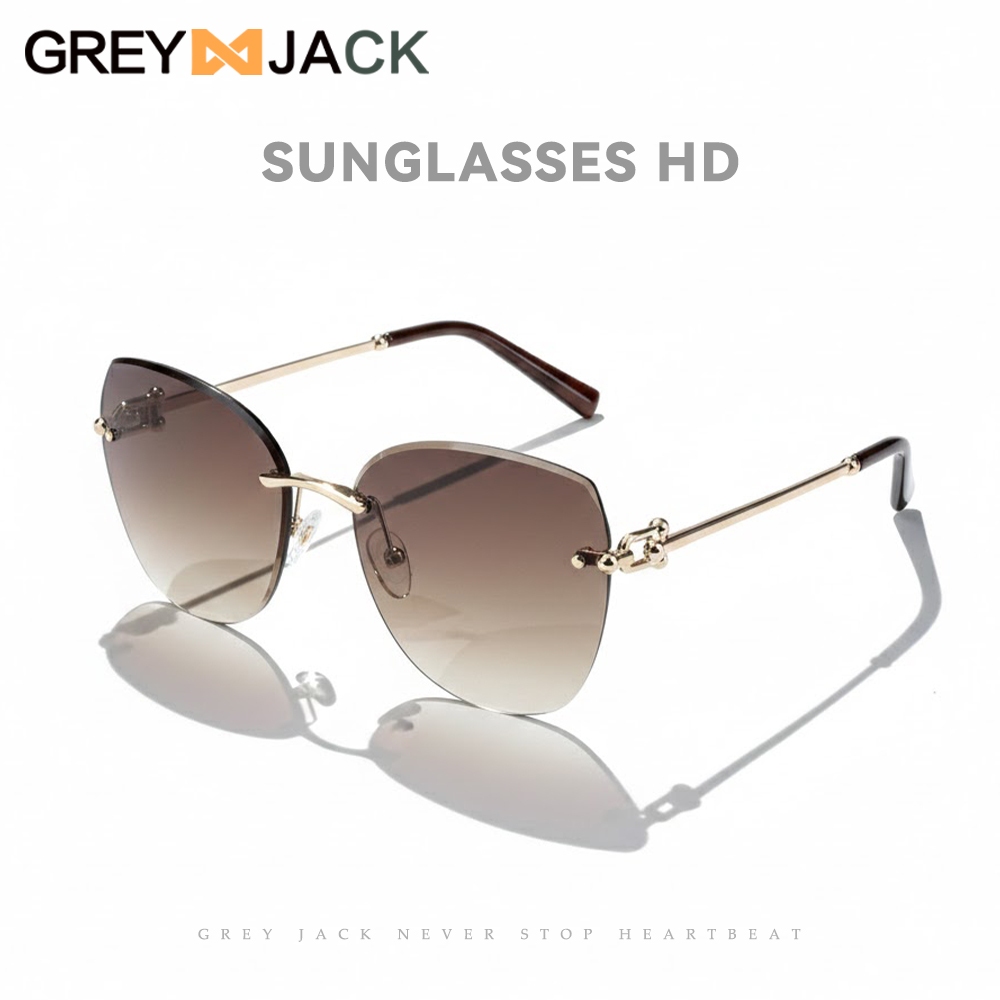 Grey Jack Kacamata Hitam Sunglasses Anti Silau UV400 Bahan Alloy Model Kotak Semi Cat Eye Oversize Bahan TR90+Metal Kokoh dan Ringan 33266