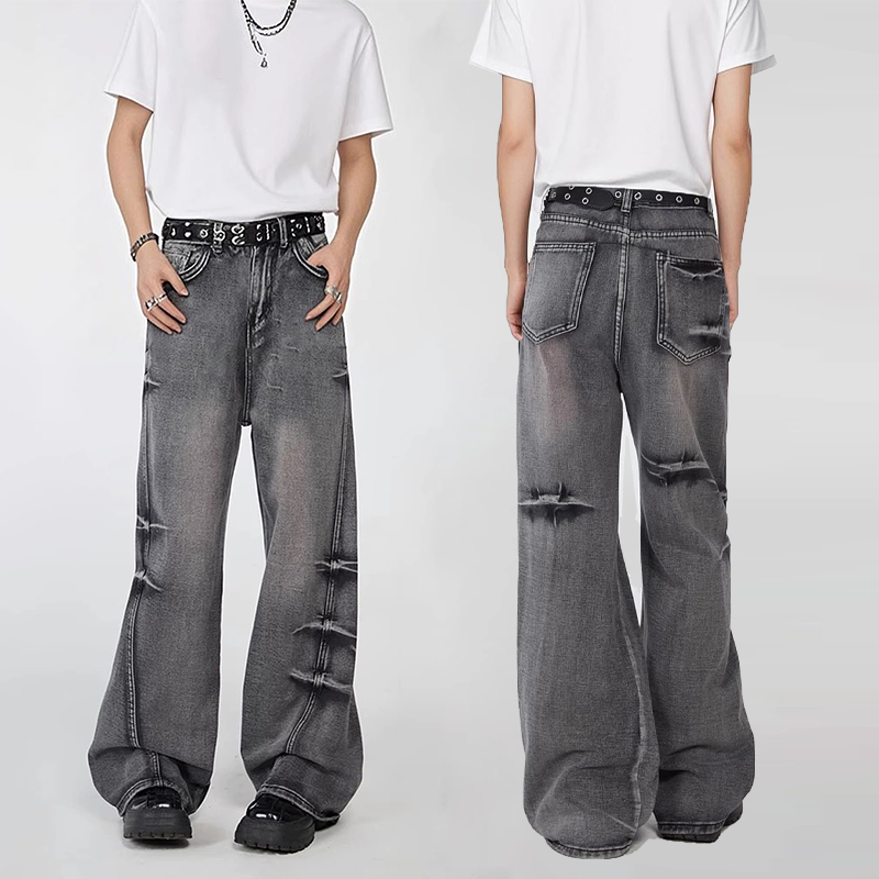 Baggy Pants Celana Retro Jeans Pria Distro Terbaru Celana Casual Korean Style Pria Straight Jeans Grey Denim Murah Grati