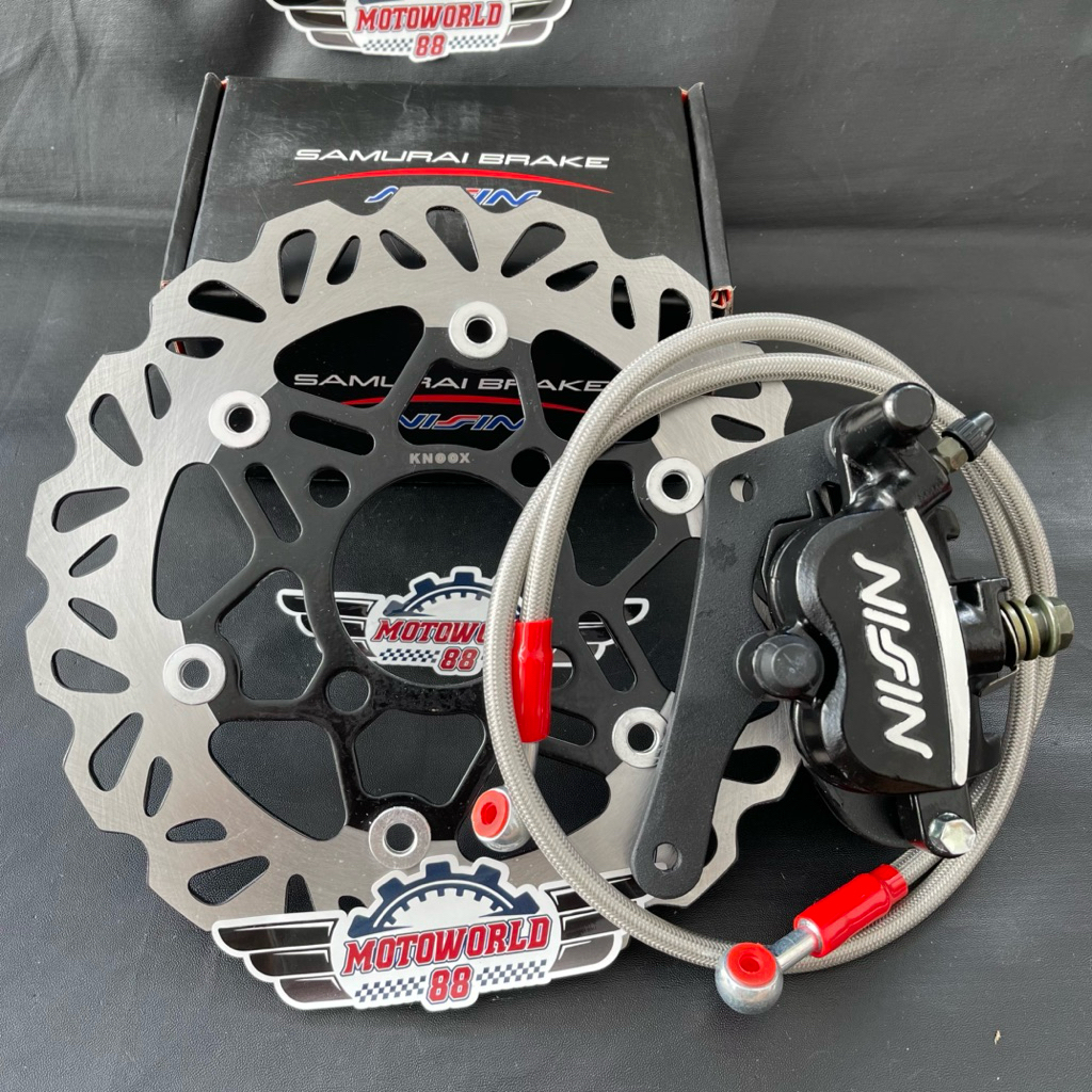 PIRINGAN DISC CAKRAM DEPAN 220MM + KALIPER SAMURAI 2PISTON NIZZIN + SELANG REM 95CM CARBON + BREKET MIO SPORTY / VARIO B