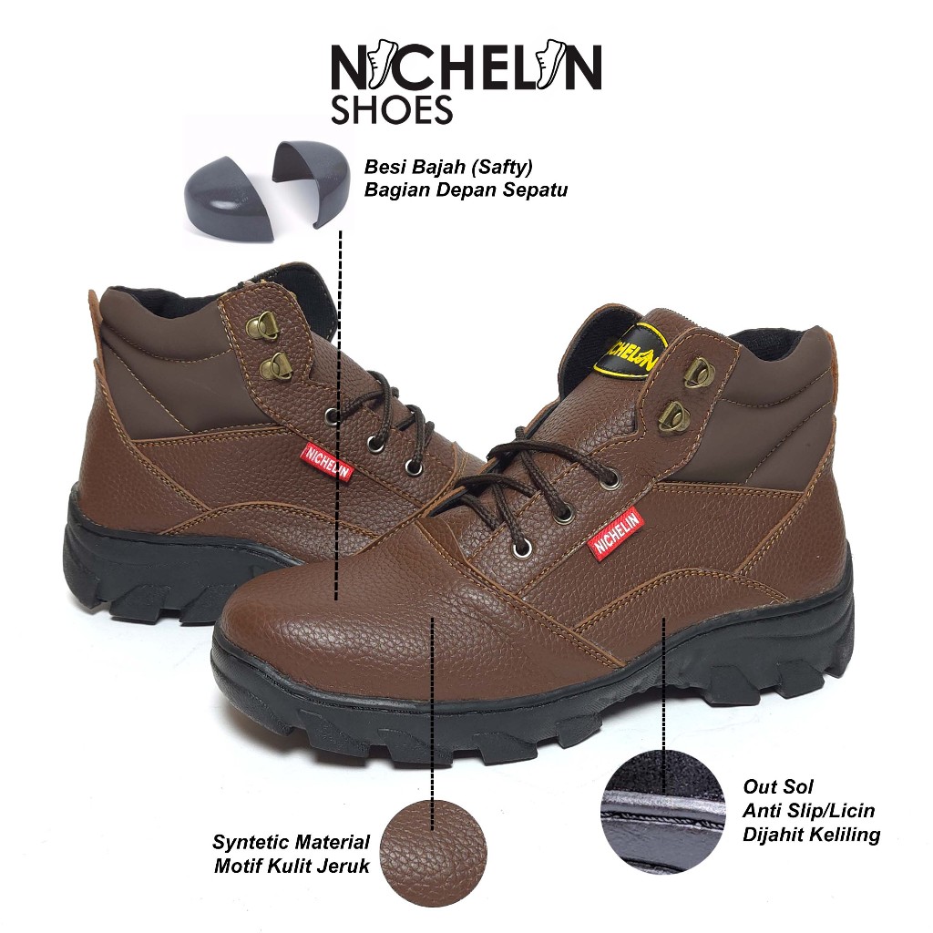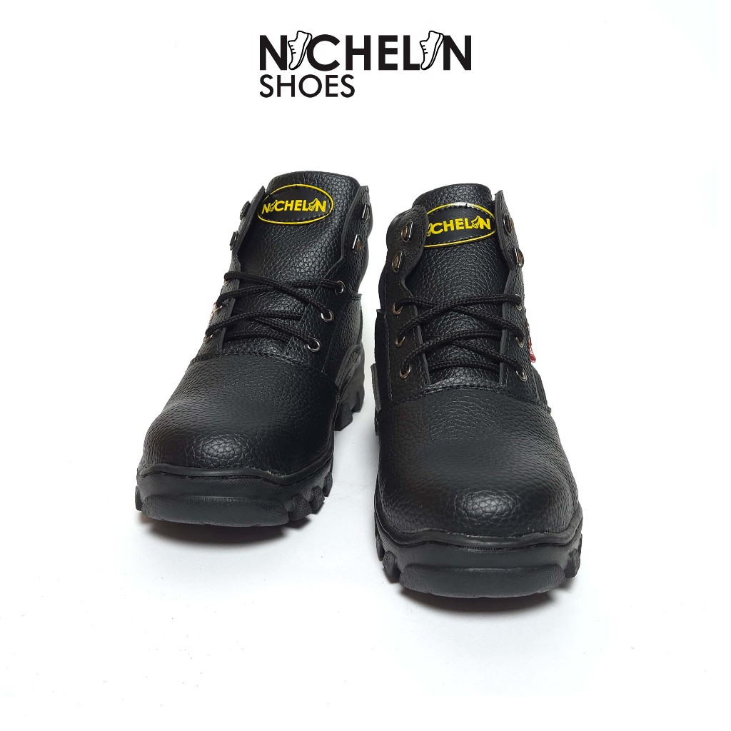 SEPATU SAFETY NICHELIN [KODE B-008] TALI TINGGI UJUNG BESI SOL JAHIT KELILING KERJA PROYEK LAPANGAN