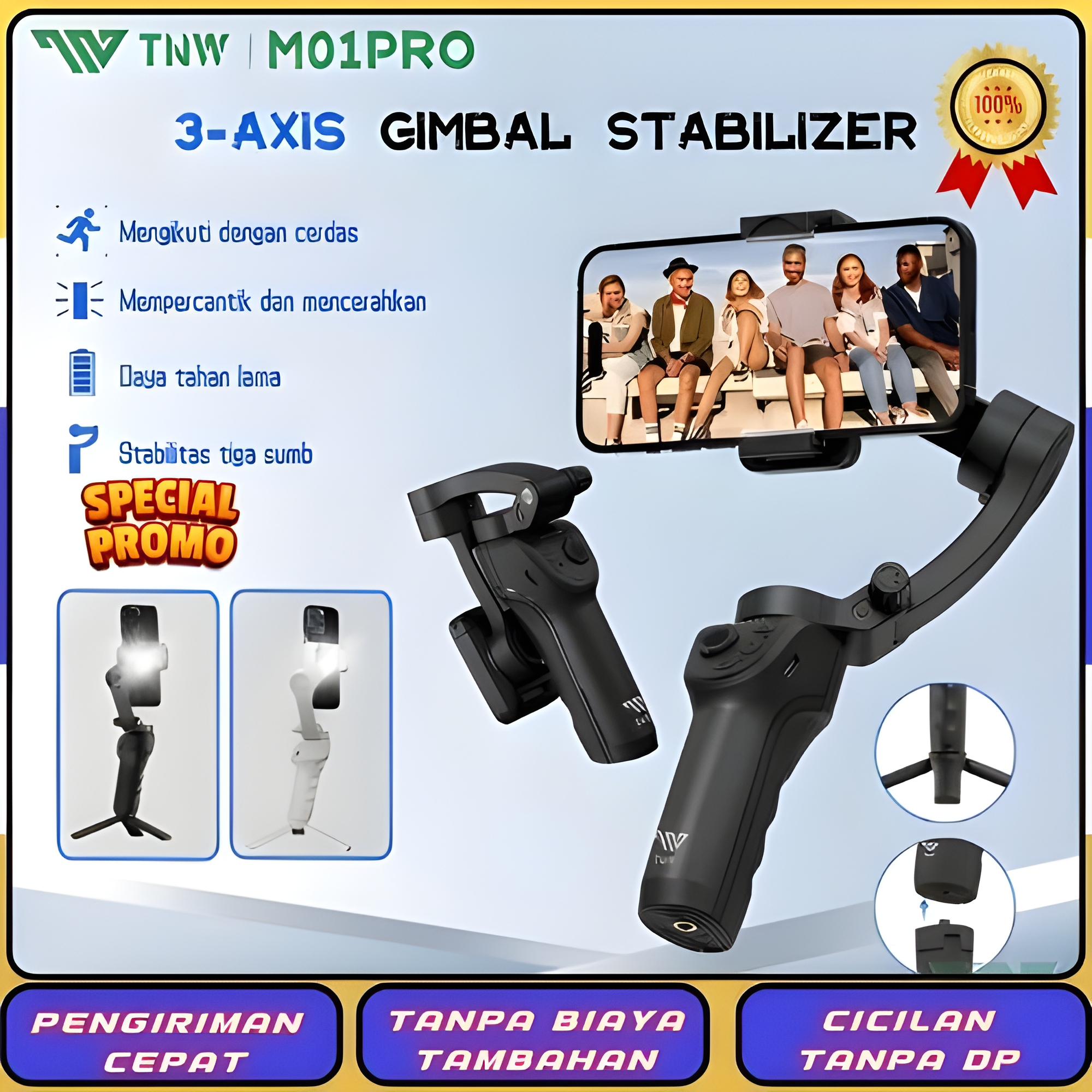 Gimbal Stabilizer Hp Kamera TNW M01 PRO Axis Smartphone & Action Cam Gimbal Face Tracking Auto-Inception+Lampu