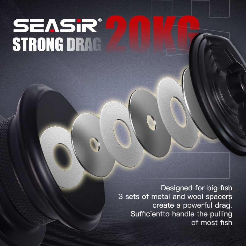 SEASIR TINGHE Spinning Reel Pancing Power Handle, Daya Tarik Maksimum 10-20KG, Spool Aluminium Ukir CNC, Rasio Gigi 5.2: