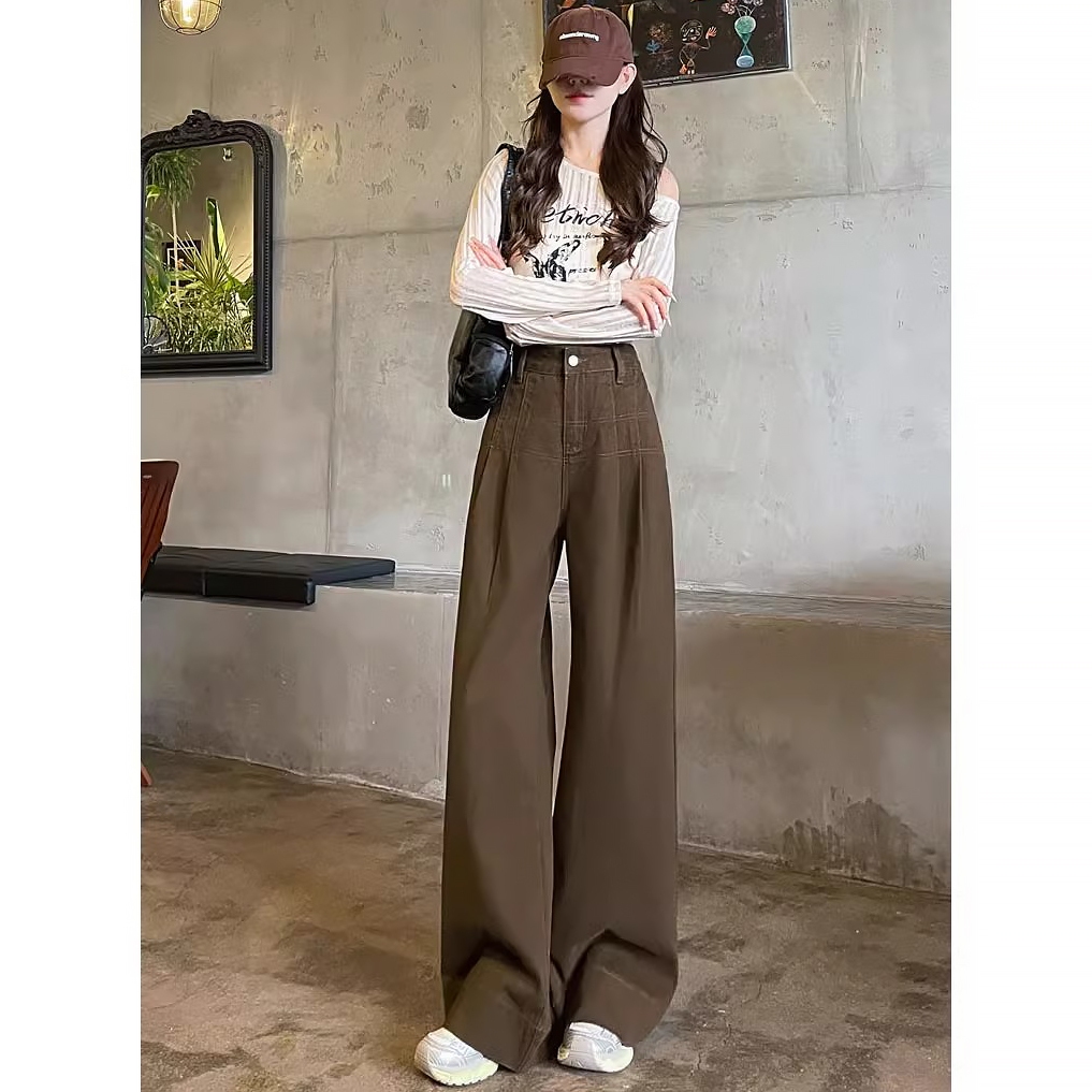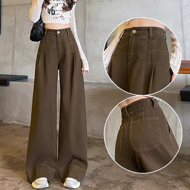 JUMBO Celana Jeans Wanita Loose cokelat korean style baggy highwaist celana jeans kaki lebar kekinian FASHION Murah Grat