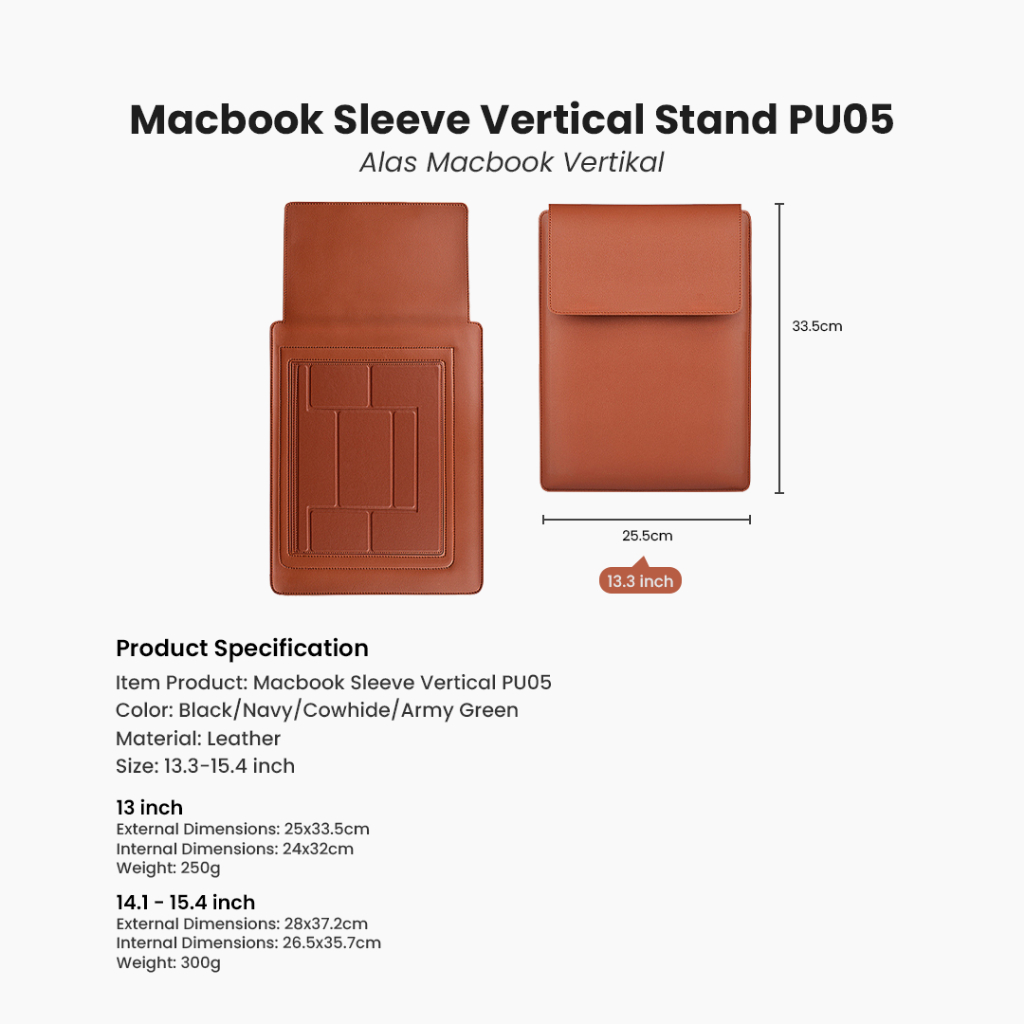 Vertical Stand Sleeve Pu05 Tas Macbook Vertical Kulit Pu Premium Waterproof Sarung Skin Laptop Sleeve Pouch Macbook