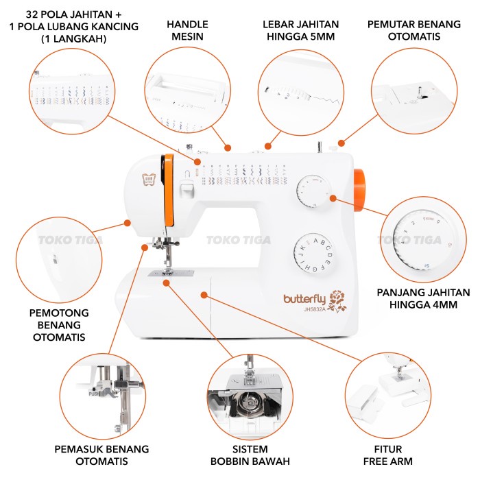 Mesin Jahit Butterfly Jh5832A / Jh 5832 A (Multifungsi Portable)