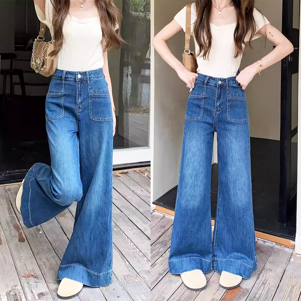 JUMBO SIZE S 5XL New Celana jeans panjang wanita baggy jeans Biru dark korea style premium jeans Highwaist Murah Gratis