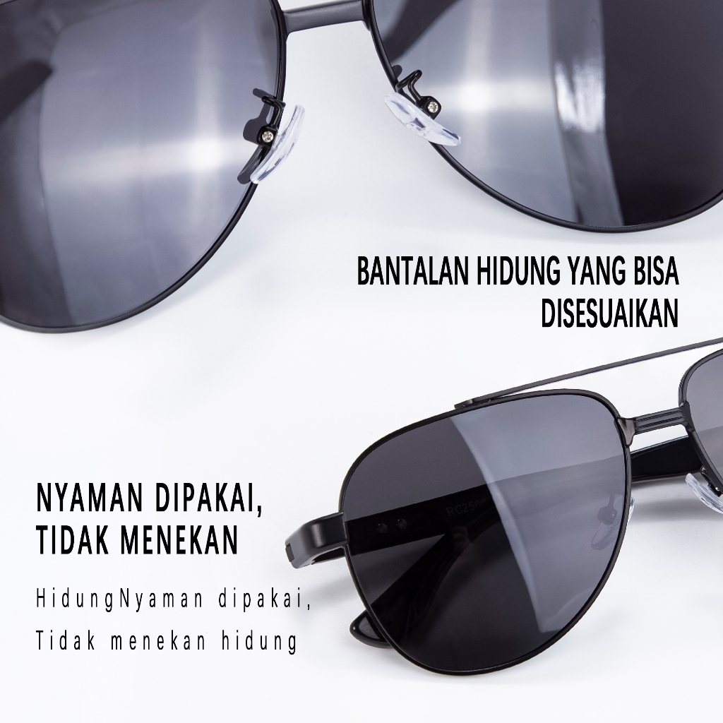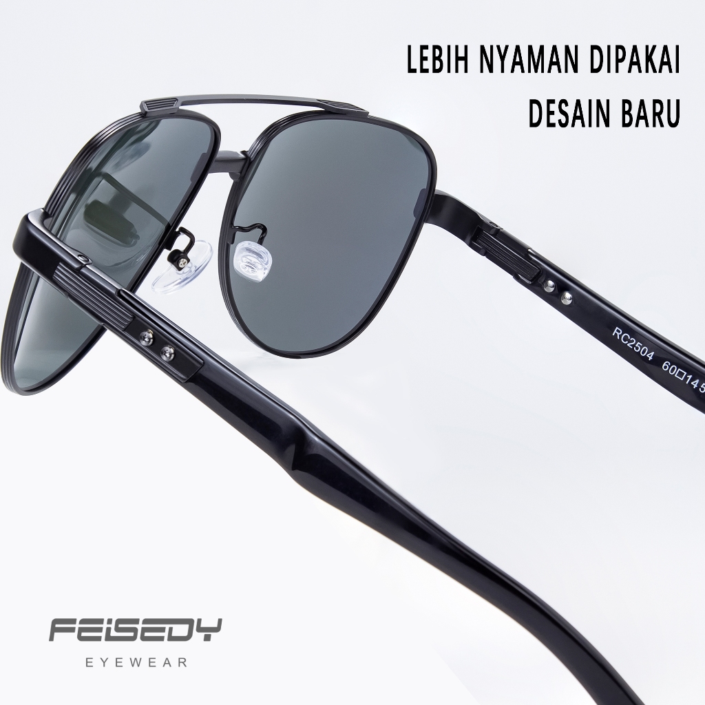FEISEDY Kacamata Hitam Sunglasses pria Square Polarized Polygon Lens Anti UV400 Ringan Nyaman Seharian RC2504-1 BLACK