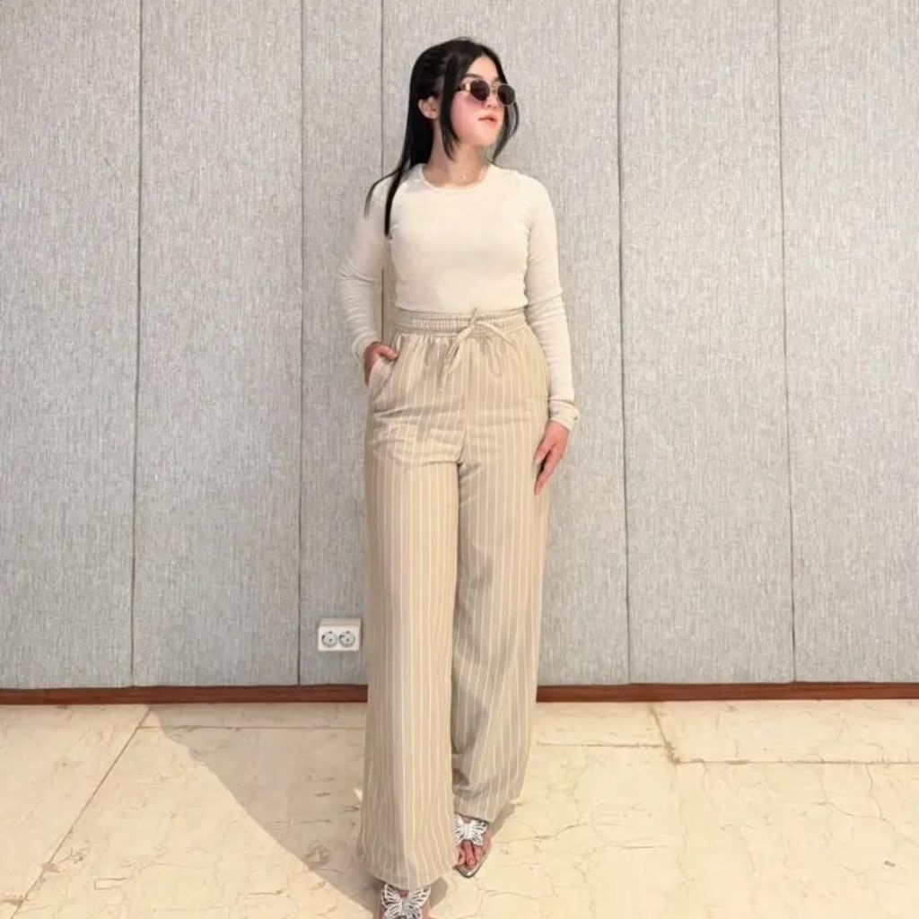 RB Fashion House Every Day Pants Stripe Pants Bangkok Celana Panjang Wanita Baggy Kantor Kuliah Motif Garis Kulot Pinstr