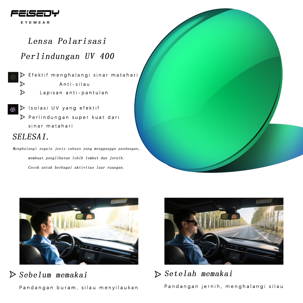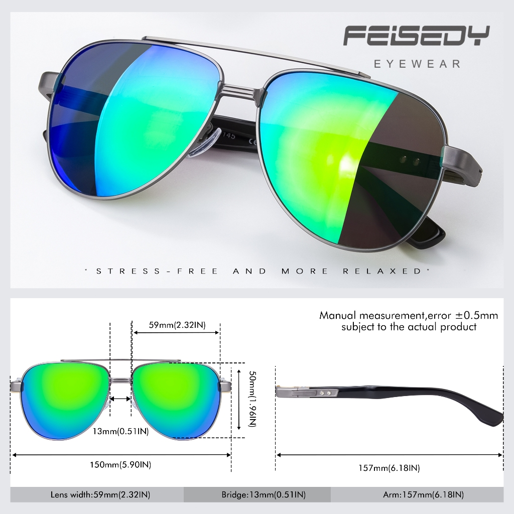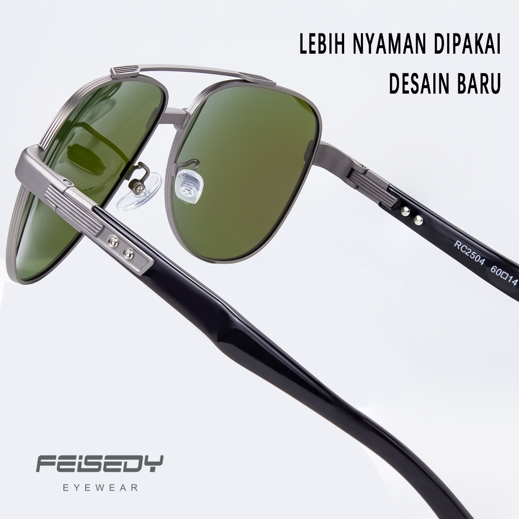FEISEDY Kacamata Hitam Sunglasses pria Square Polarized Polygon Lens Anti UV400 Ringan Nyaman Seharian RC2504-4 Green