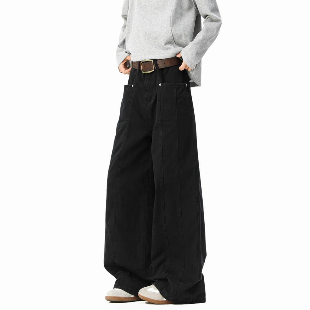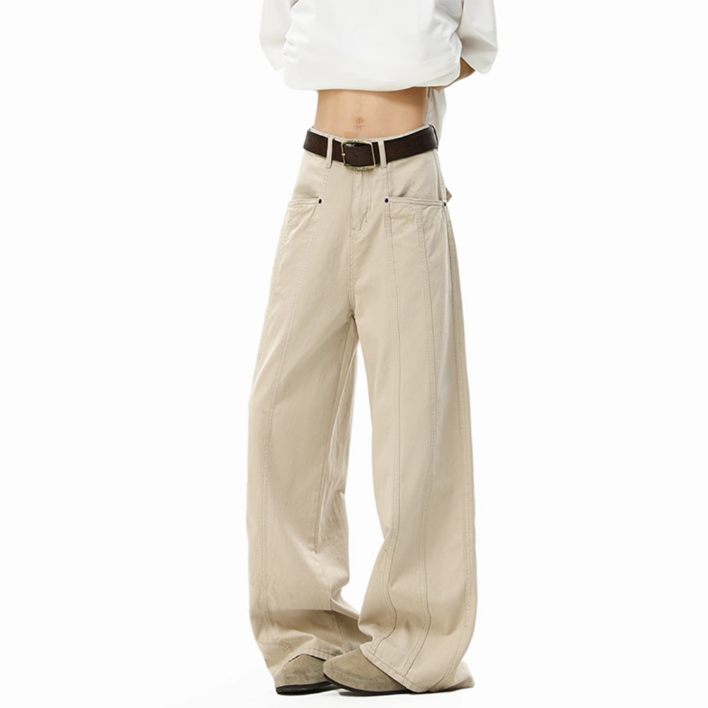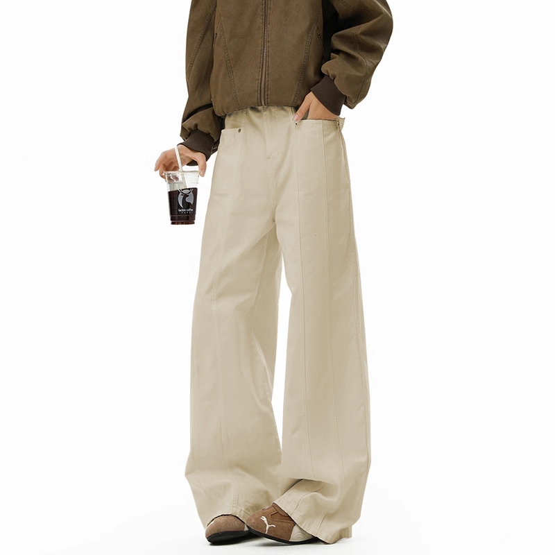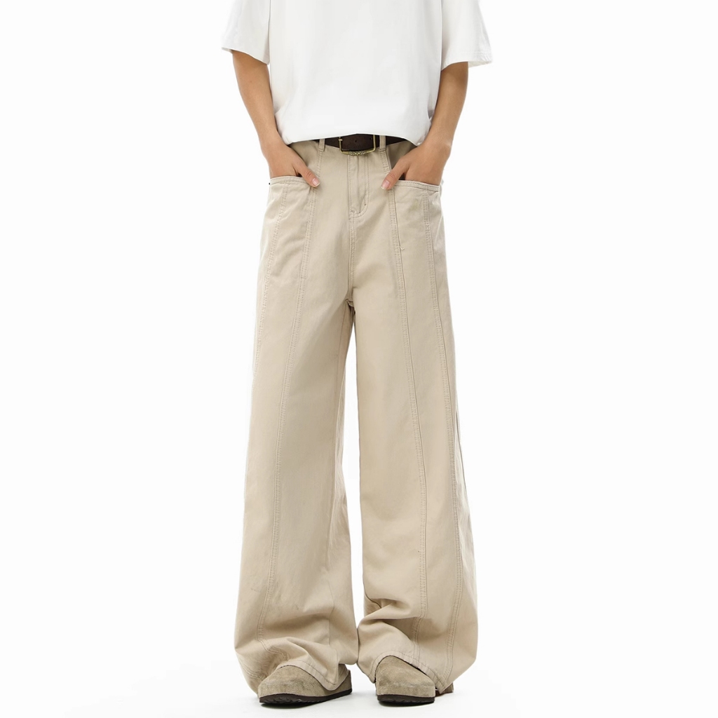 Celana Cargo Pria Krem Tempelan Bahan Premium Loose Kaki Lebar Lurus Santai Panjang Multi Gaya Nyaman Dipakai Murah Grat