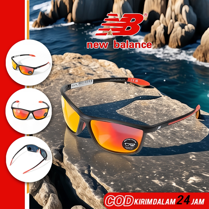 Kacamata Hitam Sport NB - Lensa Polarized Anti UV Frame Hitam & Merah untuk Outdoor Olahraga