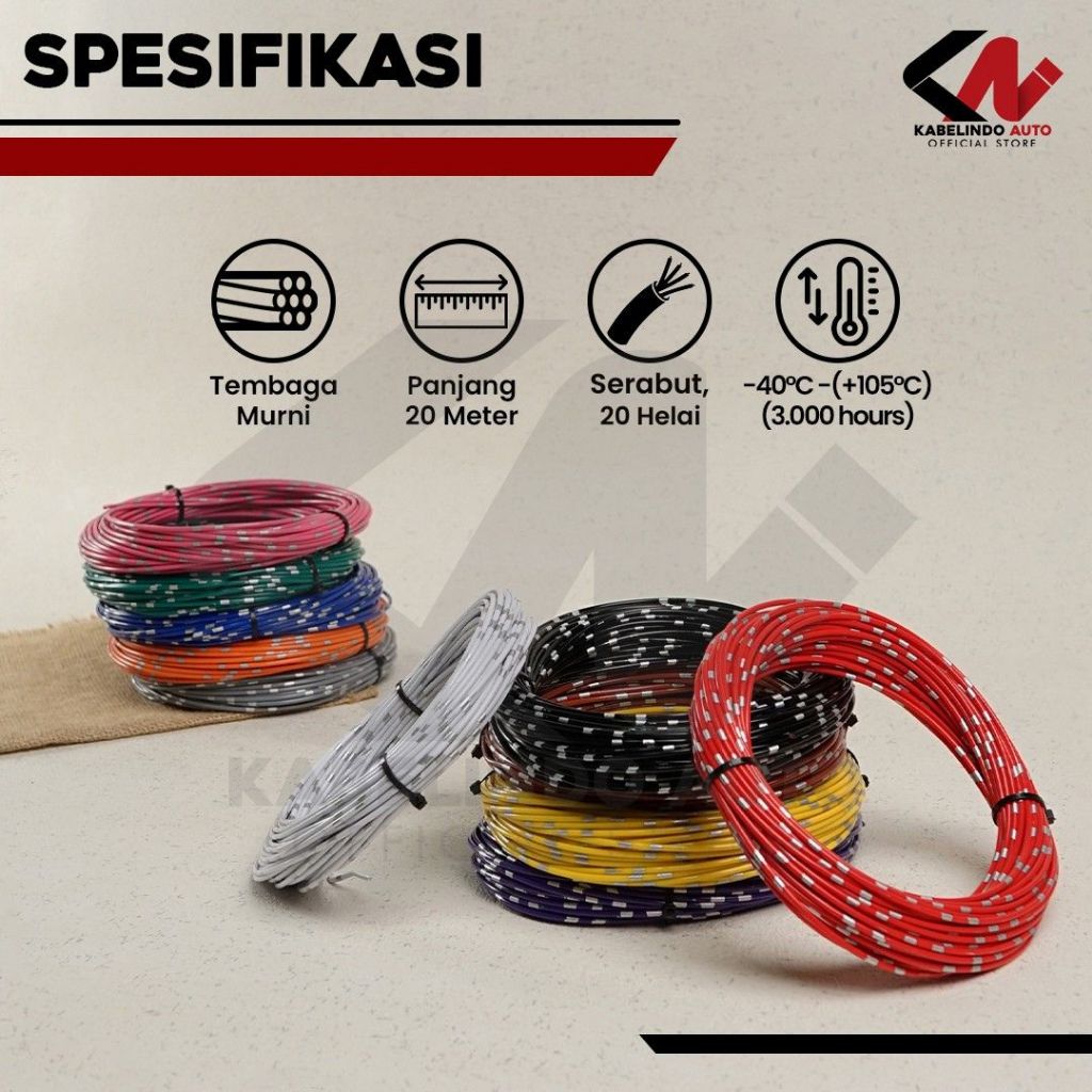 Kabel Bintik AVSS 1.5MM x 20M Kabel Otomotif Body Mobil Motor Serabut Tembaga
