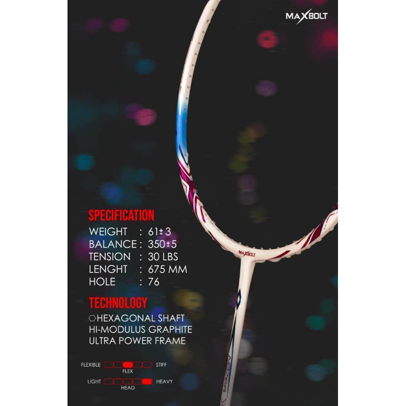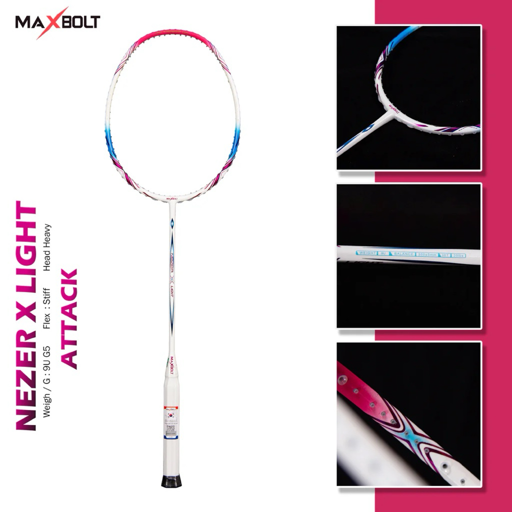 Raket Maxbolt Nezer X Light 9U Original | Head Heavy | Tension 30lbs | Free Senar BG66 Ultimax
