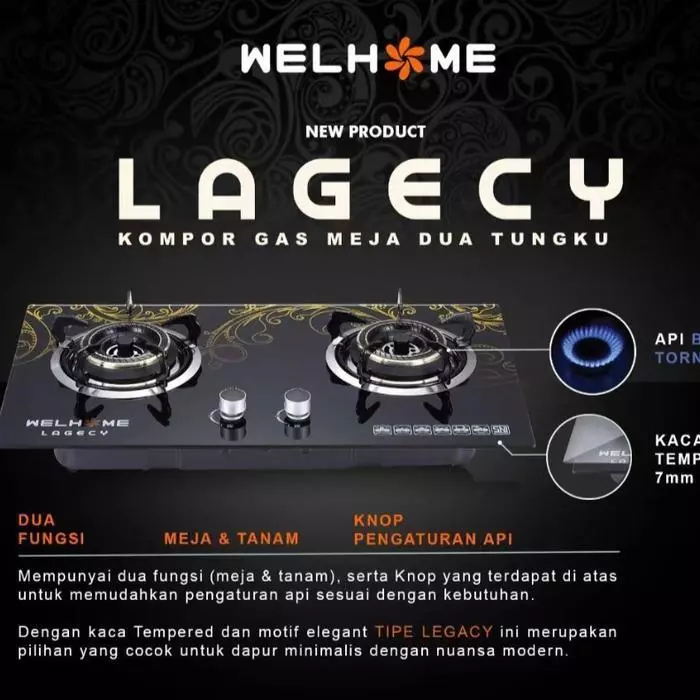 Kompor Gas Tanam 2 Tungku Kaca - NIKO Reflection Next Black