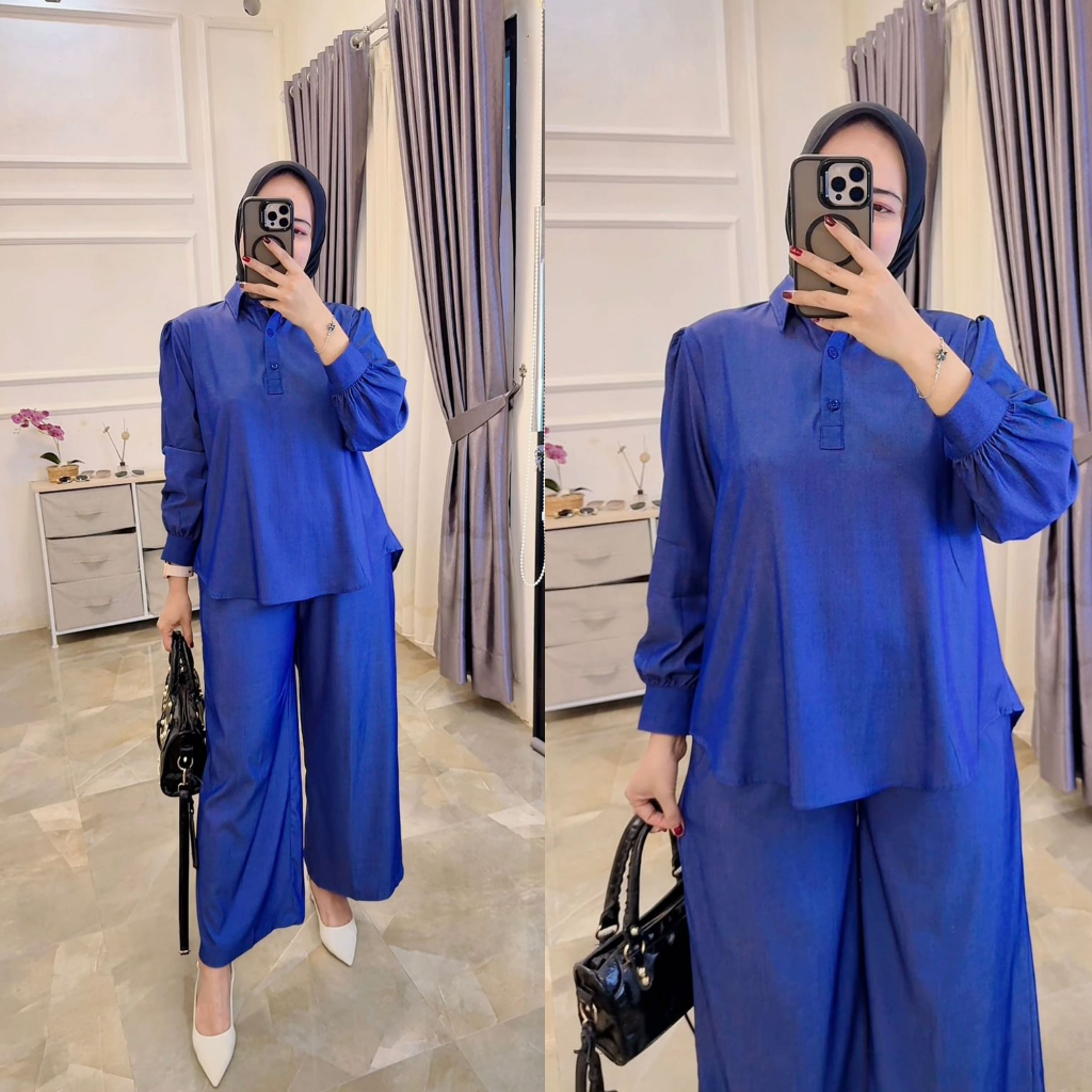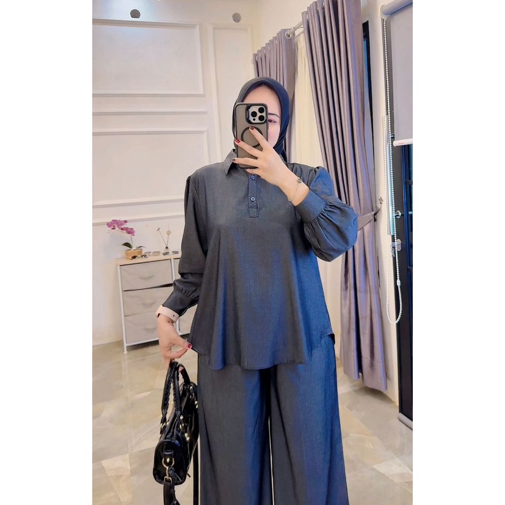 Bunca - Setelan Celana Wanita Bahan Tencel Denim Uniqlo Premium – Celana Kulot Pinggang Karet, Nyaman & Elegan