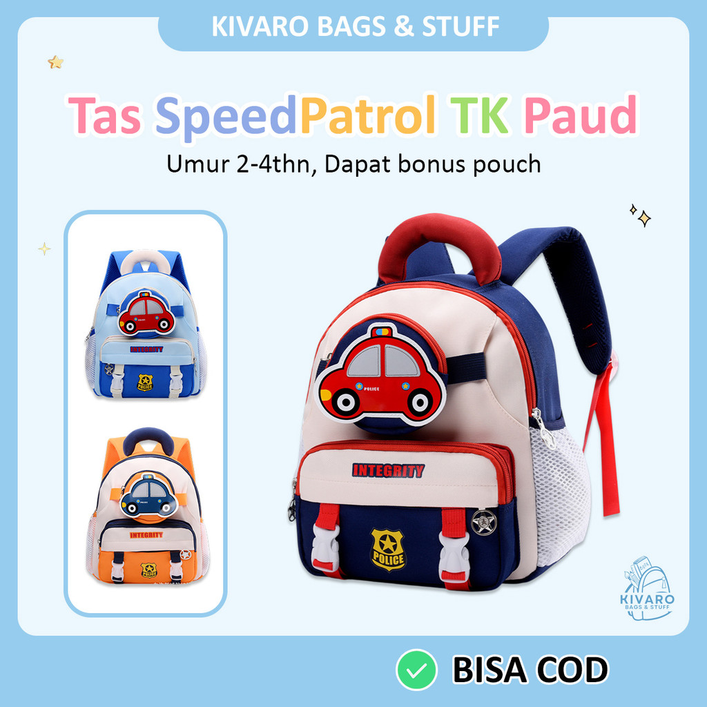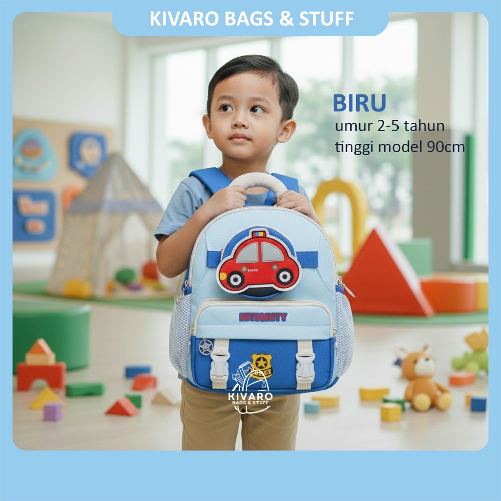 Kivaro SpeedPatrol Series Tas Anak TK PAUD Motif Mobil Polisi Laki-laki Usia 2-4Thn 30cm | 628