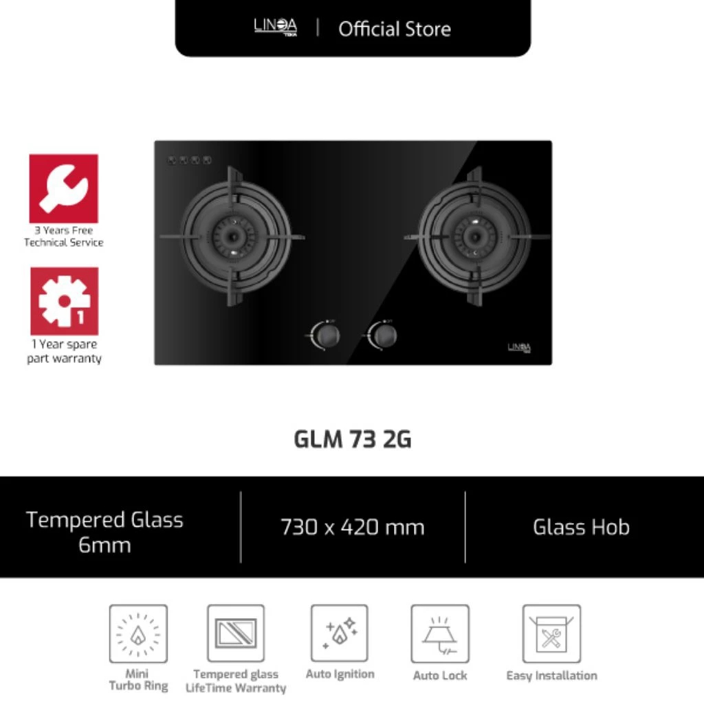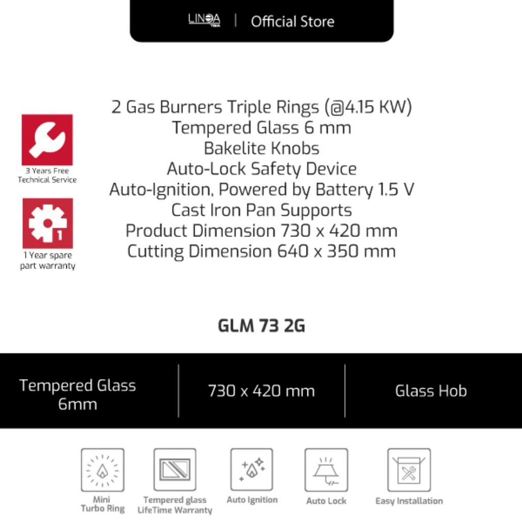 Kompor Tanam 2 Tungku TEKA GLM 73 2G - Kompor Gas Kaca Tempered Hitam, Burner Turbo 4.15KW, Kapasitas 20Kg/Tungku