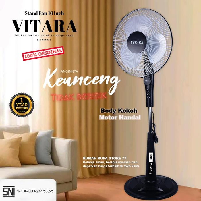 KIPAS ANGIN BERDIRI STAND FAN VITARA VTR-1605 16 INCH BODY HITAM JARING BESI