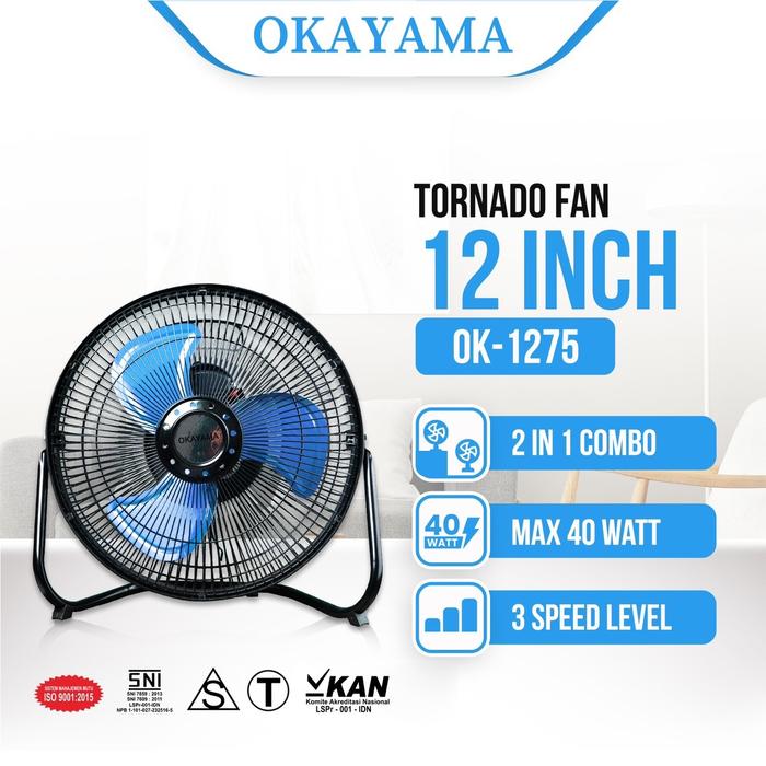 KIPAS ANGIN TORNADO MEJA / LANTAI 12 INCH OKAYAMA OK-1275 KIP AS