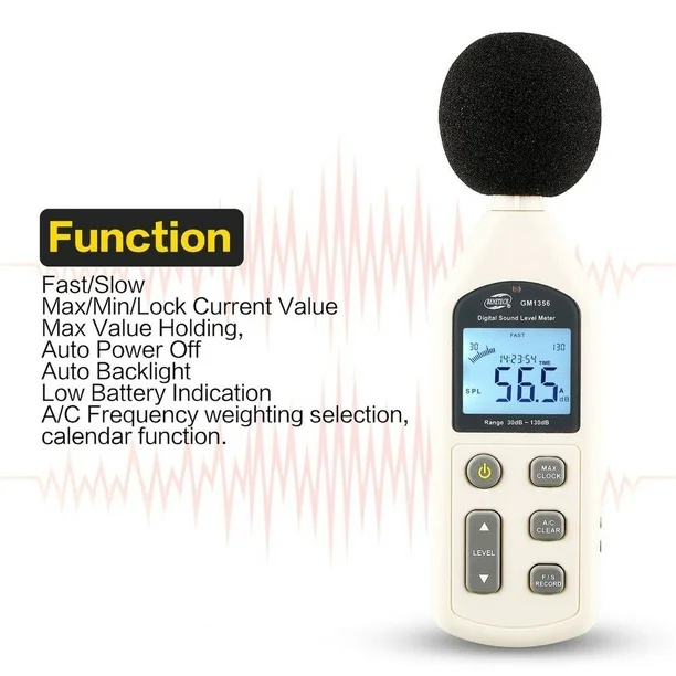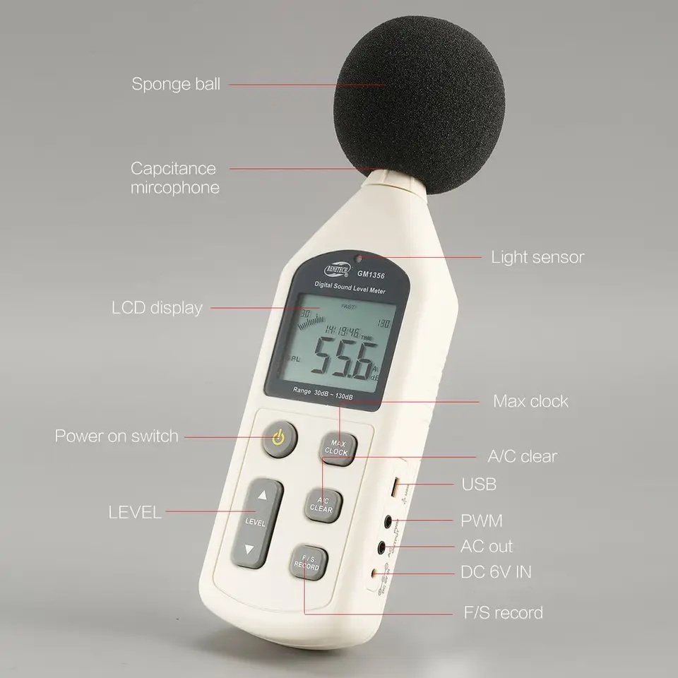 Benetech GM-1356 Digital Sound Level Meter Kebisingan Suara Audio Vioce Tester Meter GM1356 30-130dB A/C Cepat/Lambat Db