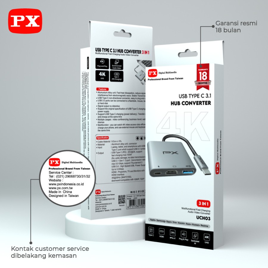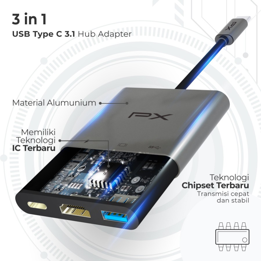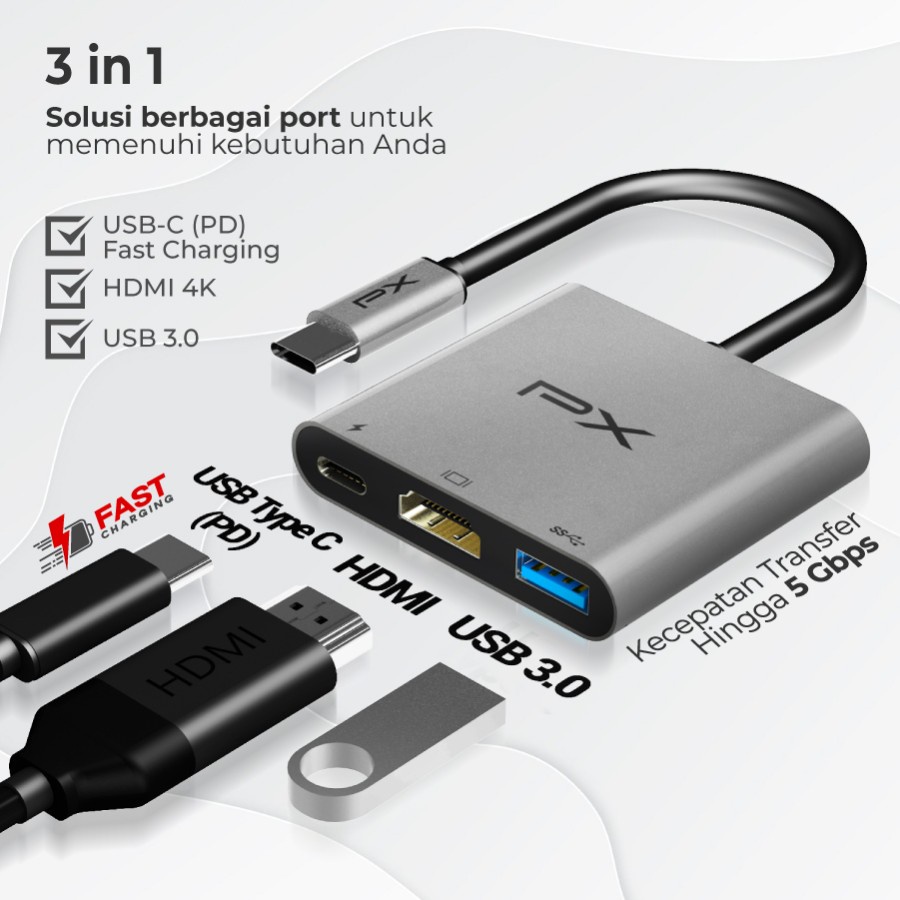 Usb Hub Type C 3.1 Thunderbolt 3 Hdmi 4K Fast Charging 3In1 Px Uch03