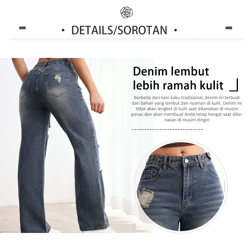 [Harga Terjangkau] Dust Highwaist Loose Jeans Wanita Celana Jeans Wanita Sobek Baggy Jeans Hangover Murah Gratis Ongkir