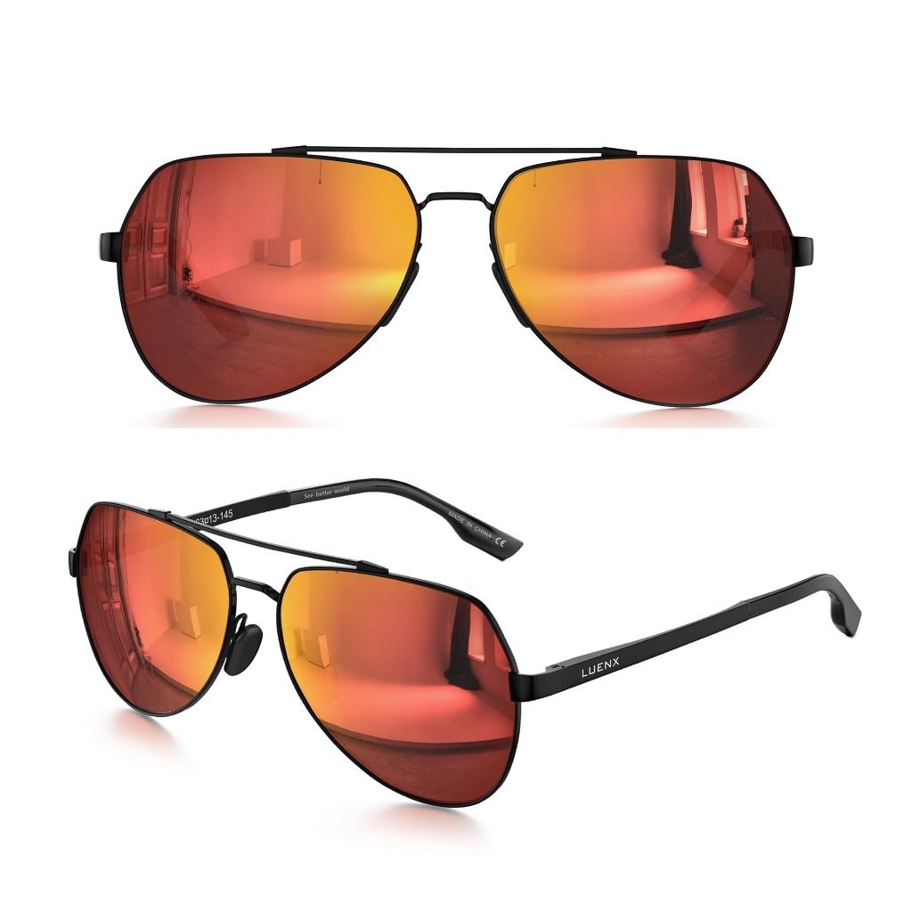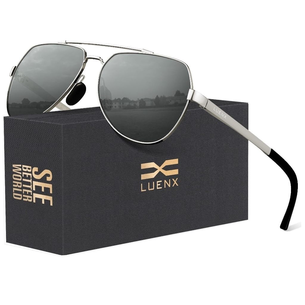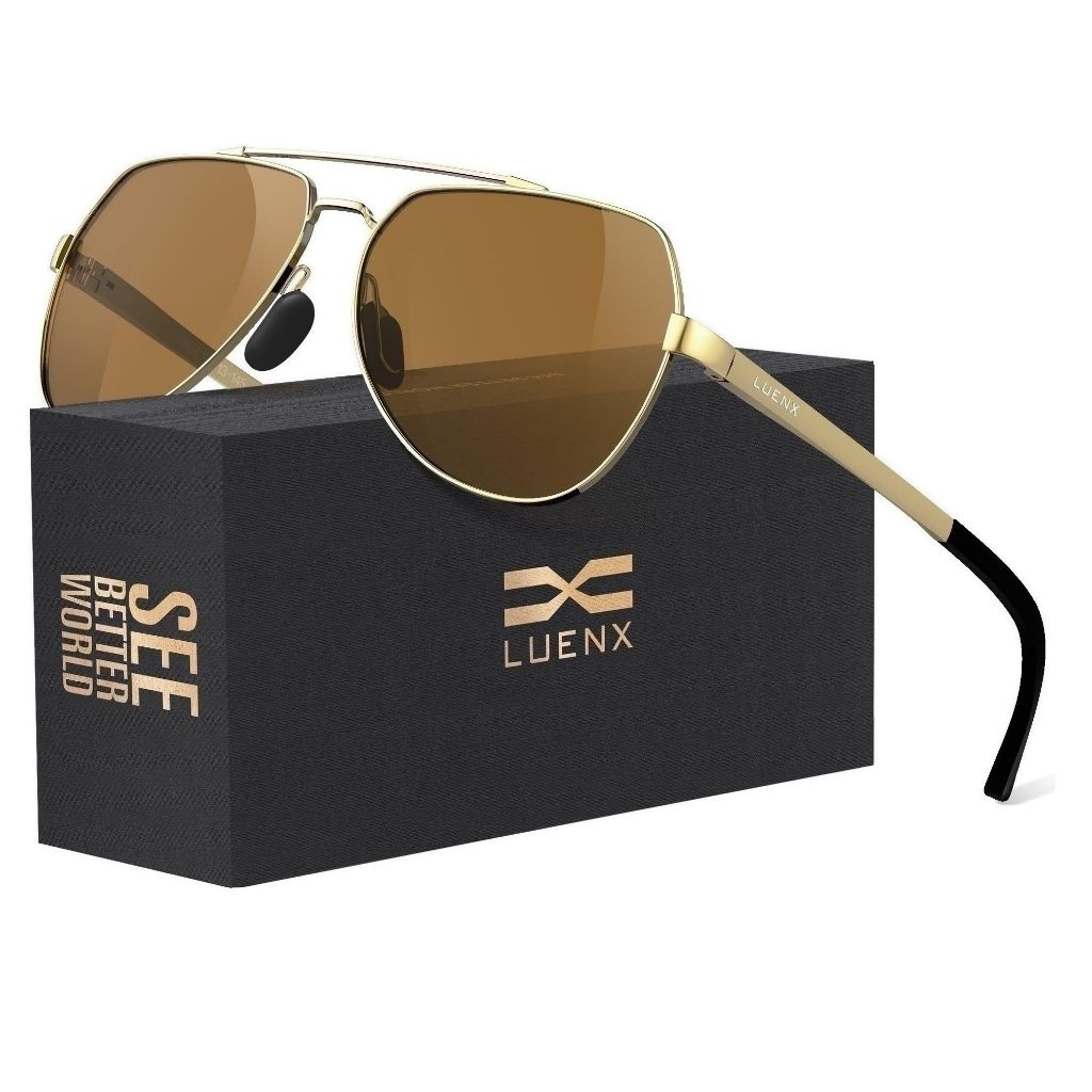 Luenx Kacamata Hitam Aviator Sunglasses Unisex Polarized New Shades Large Metal Frame - UV 400 Protection 6404-5