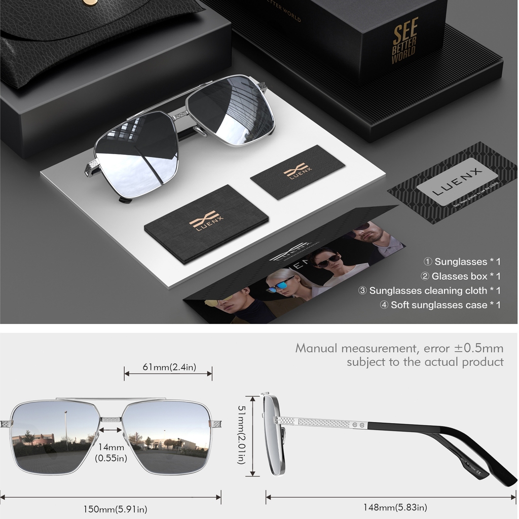 Luenx Kacamata Hitam Aviator Sunglasses Unisex Polarized Driving Classic Shades - UV 400 Protection with Accessories 61MM 6004-3
