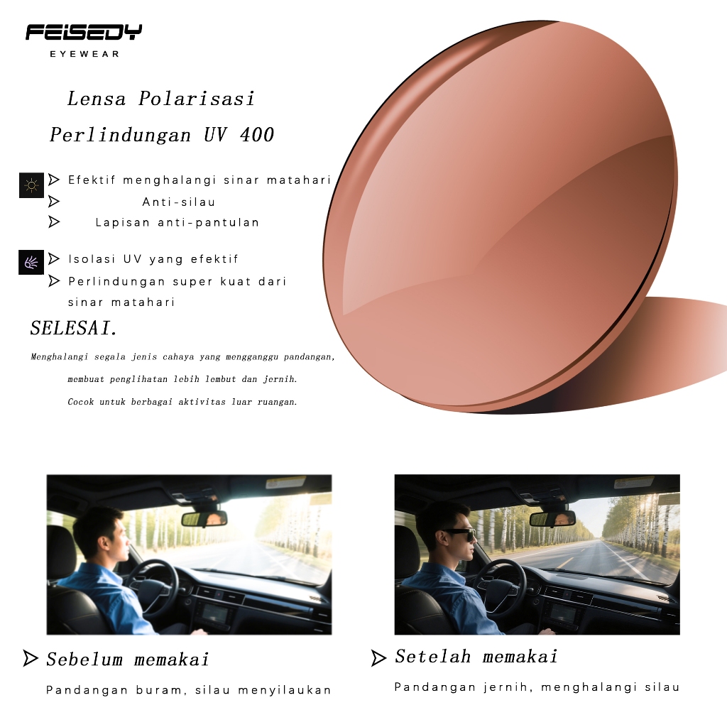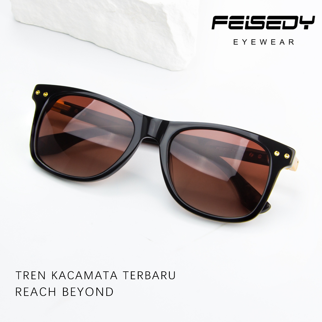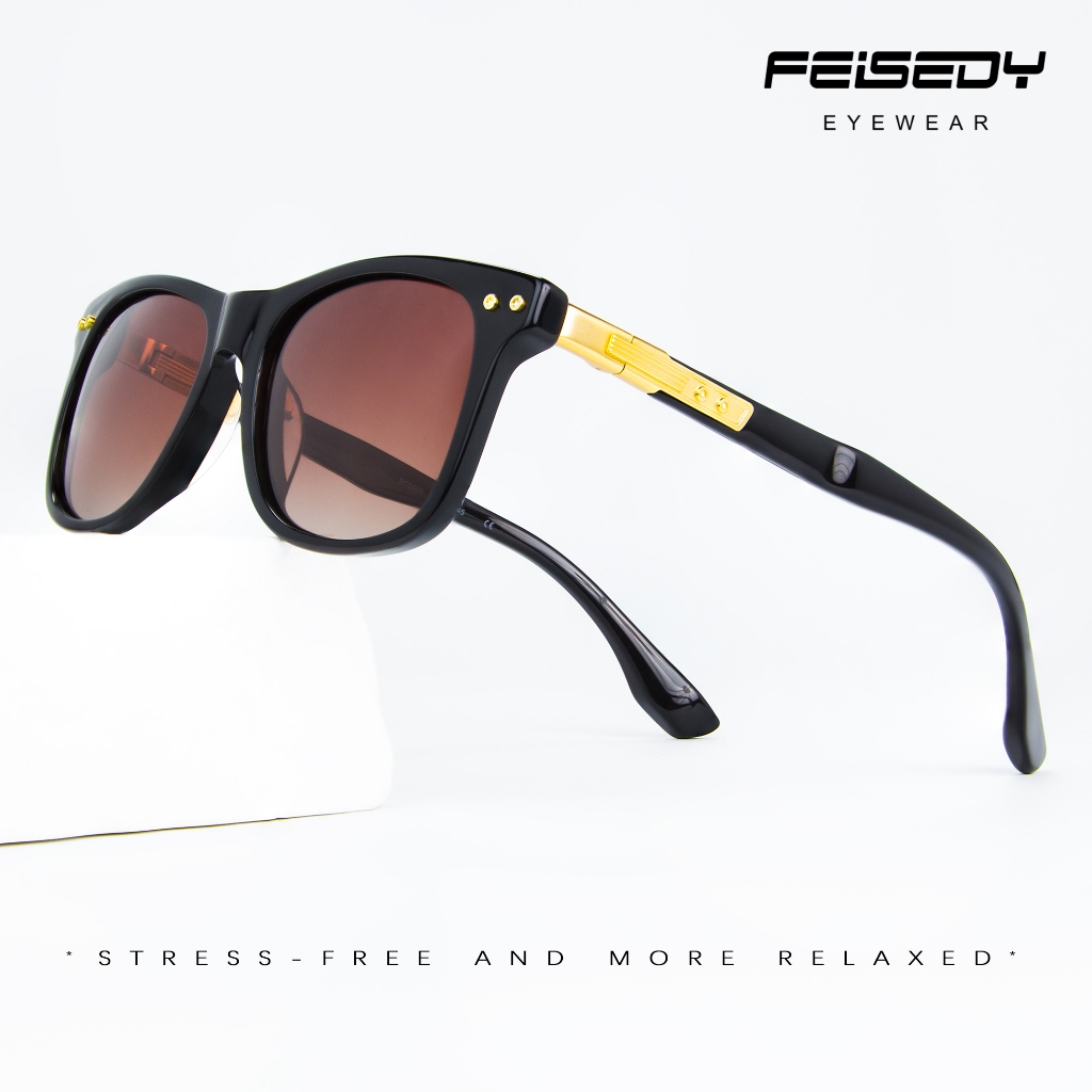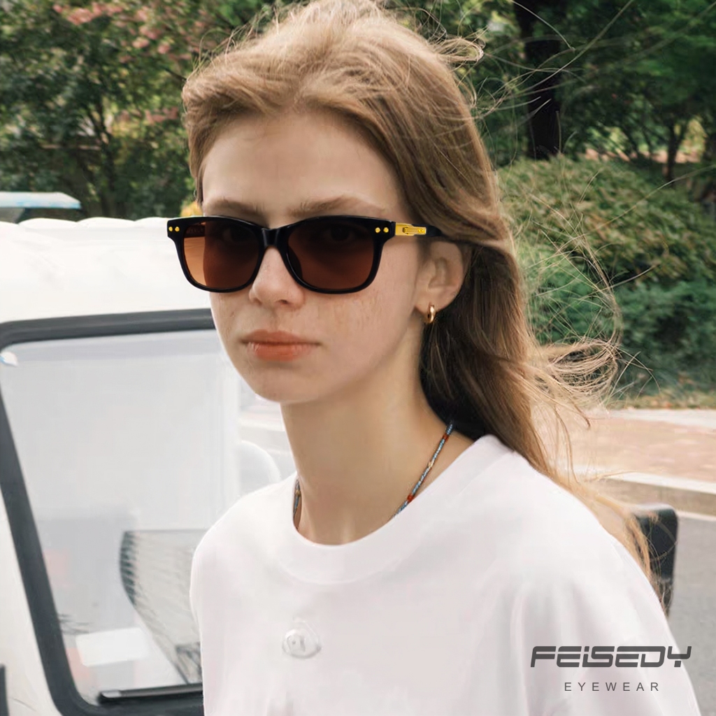 FEISEDY-Kacamata Hitam SquareFrame Polarized Female Sunglasses Retro Pilot Shades Driving UV400 Protection 2505-4 Brown