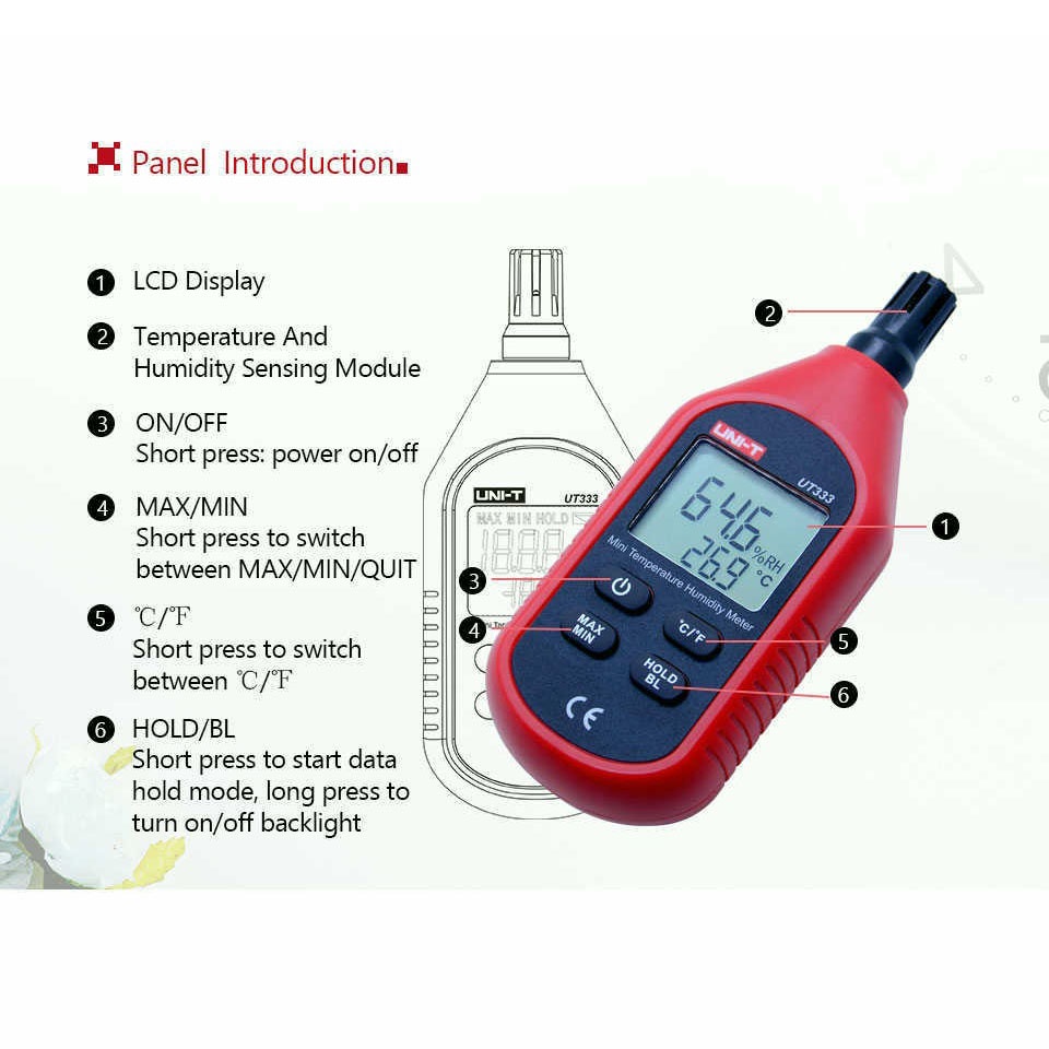 UNI-T UT333 Meteran Kelembaban Suhu Hygrometer Thermometer Humidity