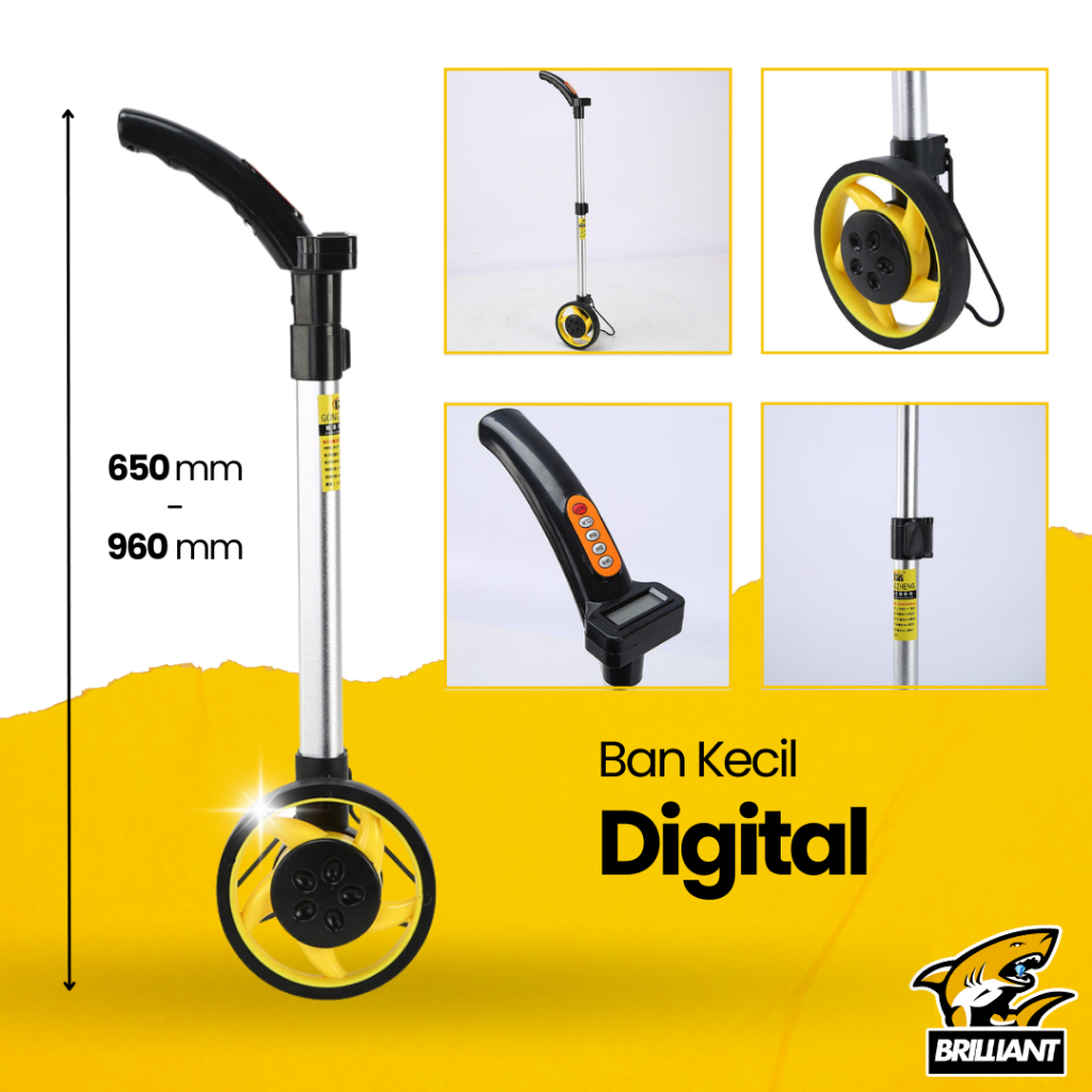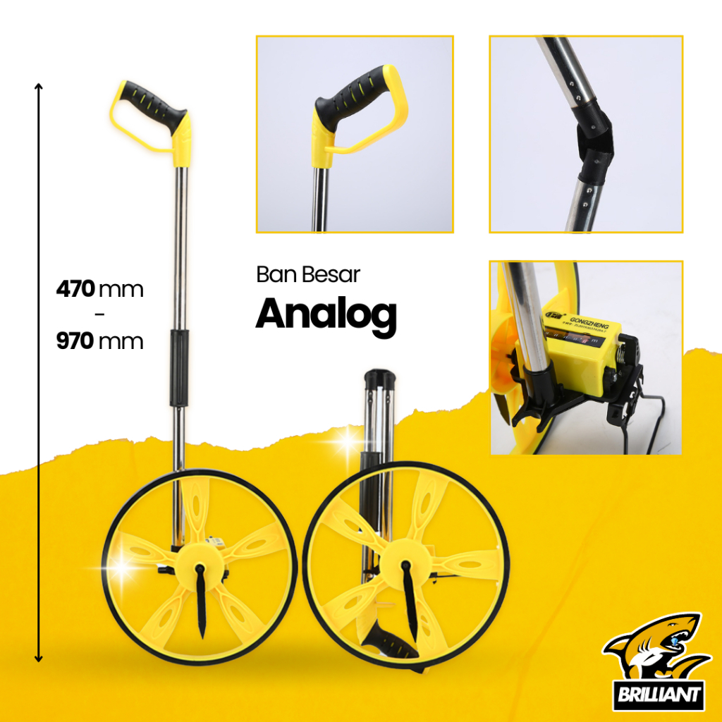 Roda Meteran Dorong Range 9999 Meter Meteran Pengukur Jalan 1 Roda 2 Roda Display Analog Digital