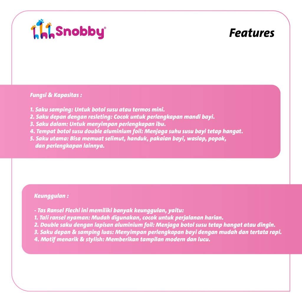 Snobby Tas Bayi Ransel Flechi Diaper Bag Saku Print