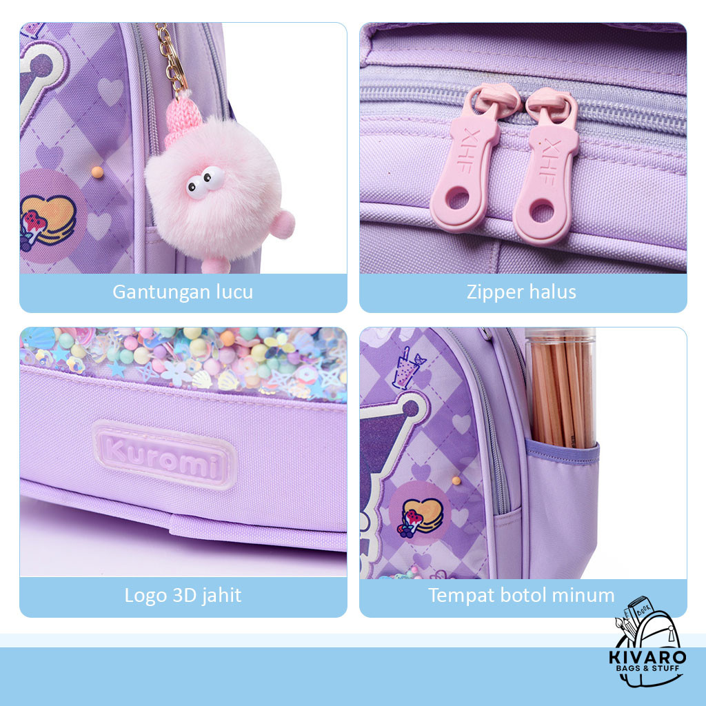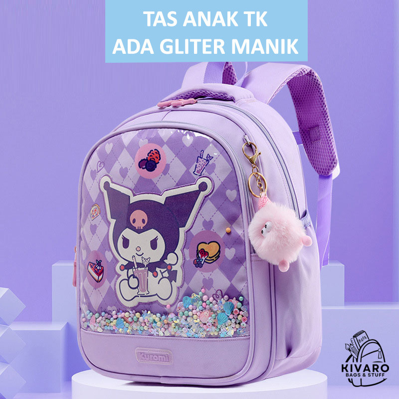 Kivaro GlitterBuds Tas Anak TK Perempuan PAUD TK 34cm + Bonus Gantungan Motif Fashion | 0892