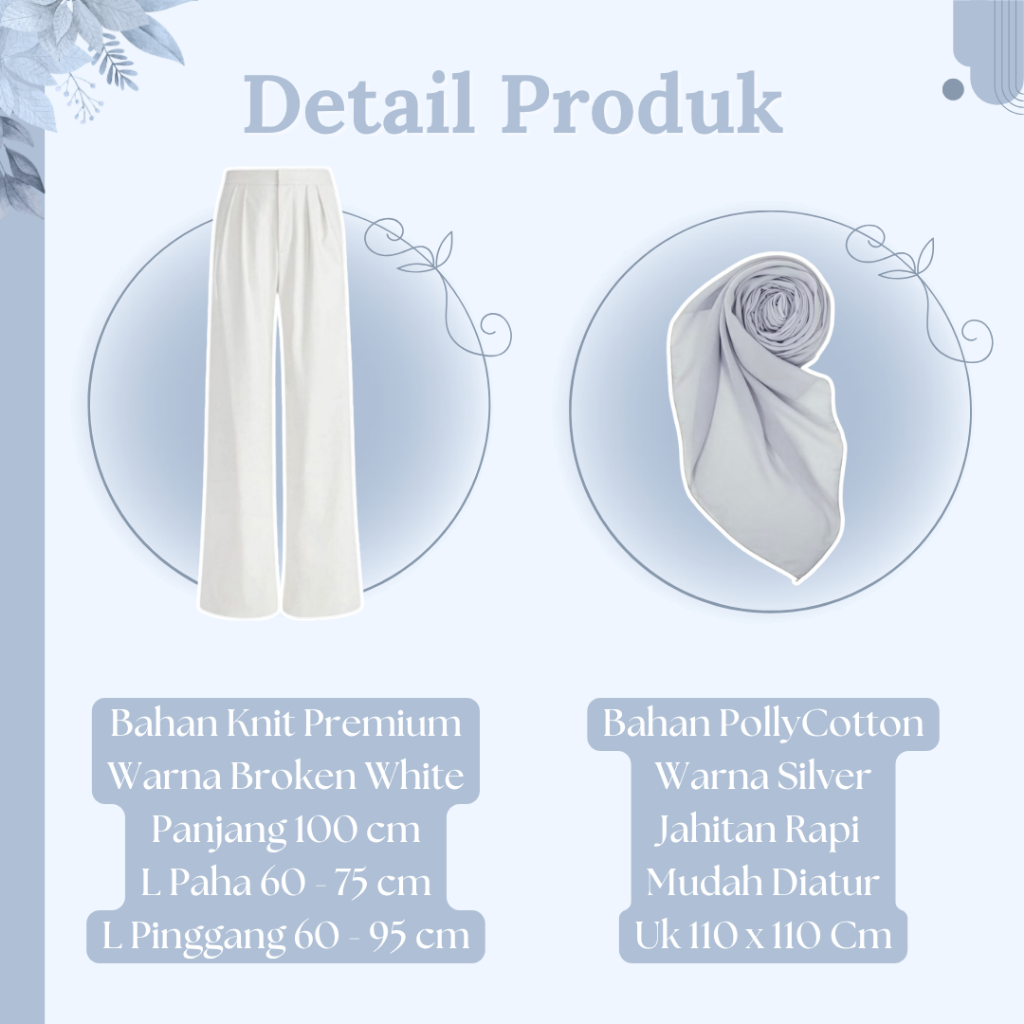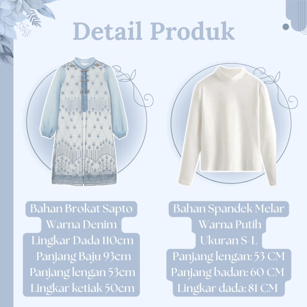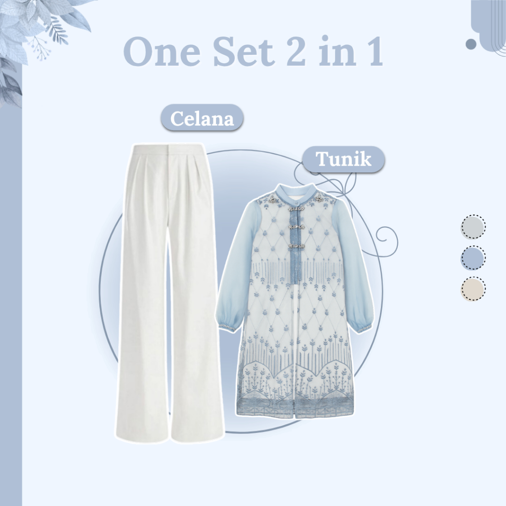 One Set Wanita Kekinian 4in1 (Tunik Brokat Blue - Manset - Celana - Jilbab) Setelan OOTD Raya RO124N