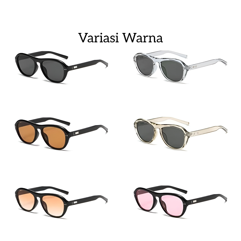 Ausmil Kacamata Hitam Fashion Retro Oval Bahan Plastik Wanita Pria Lengkap