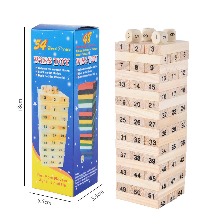 Balok Mainan Kayu Dadu Toy Tower Angka Stacko 54 Board Game Keluarga Murah Gratis Ongkir