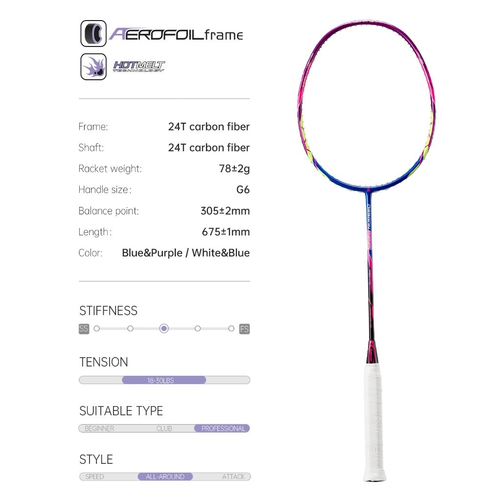 Kawasaki Dragon RAKET BADMINTON 222 5U 18-30lbs Karbon Penuh Untuk Pemula RAKET BULU TANGKIS ISI 1 FREE BAG