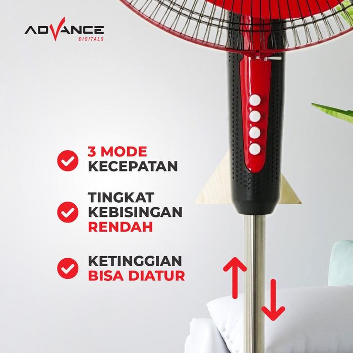 KIPAS ANGIN ADVANCE SF 16A STAND FAN 16 INCH BERDIRI HITAM MERAH MURAH GARANSI SNI LOW WATT KAKI BULAT - PACKING NORMAL