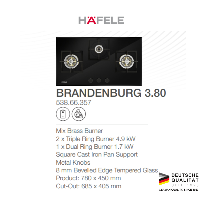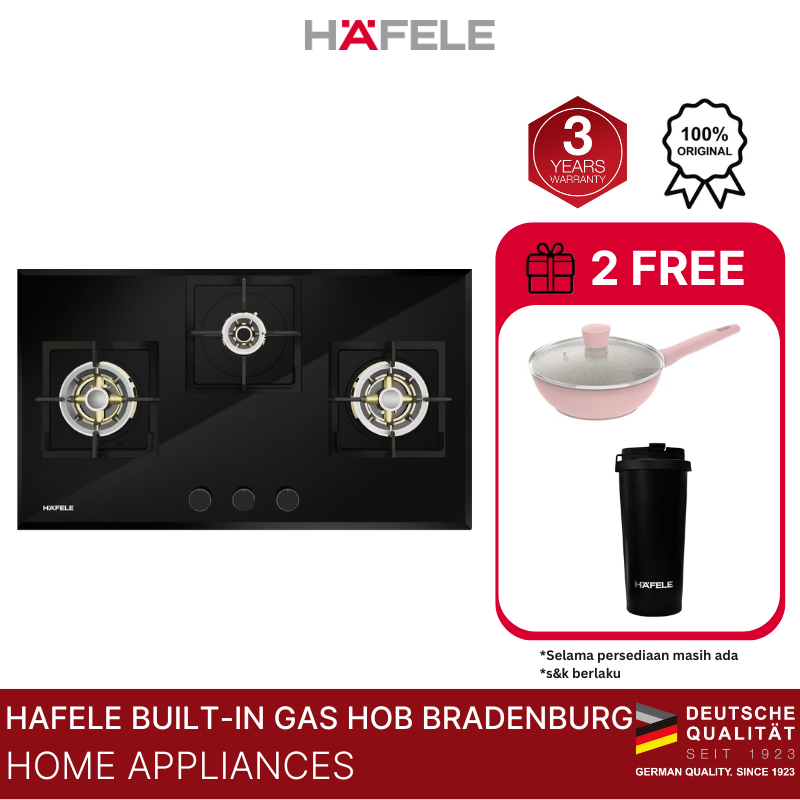 Hafele Brandenburg Kompor Tanam Gas 3 Tungku Black - Built-in Gas Hob Hitam