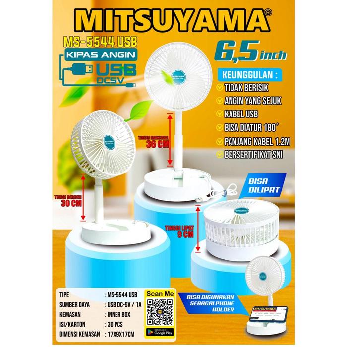 DESK FAN MITSUYAMA 5544 USB| KIPAS ANGIN MITSUYAMA 5544 USB BISA DILIPAT 6.5 INCH